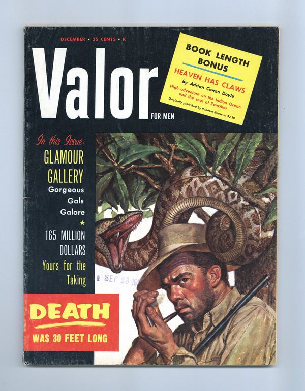 Volume 2, Issue 4 - December 1958. Men's interest magazine focusing on adventure tales, military articles, and burlesque models. 8 1/2-in. x 11-in., 66 pages, B&W Cover price $0.35.