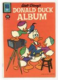 #1182, 5-7/61, 10c. Version with Donald Duck Hasty Hookup on the back cover. Walt Disney's Duck Album. Donald shows his photo album to the nephews which leads into five different stories featuring Donald Duck in "News Knight," Daisy Duck in "On-The-Job-Jitters," Scrooge McDuck in "Treasure Trickster," Gyro Gearloose in "Rub-Dub-Duck," and Grandma Duck in "Automatic Monsters." Issue also has one-page gag strips. Story and art credits: unknown. 36 pages, full color. Cover price $0.15.