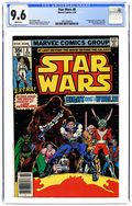 Tags: Star Wars$13.001st printing Newsstand. "Eight for Aduba-3!" Written by Roy Thomas. Art by Howard Chaykin and Tom Palmer. Han Solo and Chewbacca join forces with a motley band of misfits to embark on a dangerous adventure. Meanwhile, Luke Skywalker sets out on a dangerous mission of his own. Cover price $0.35.