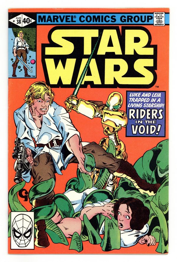 Tags: Star Wars$10.50Direct Edition. "Riders in the Void!" Written by Archie Goodwin and Michael Golden. Art by Michael Golden and Terry Austin. Relentlessly pursued by the evil Empire, Luke Skywalker and Princess Leia find themselves on their most harrowing adventure to date in this prelude to the classic "The Empire Strikes Back!" Cover price $0.40.