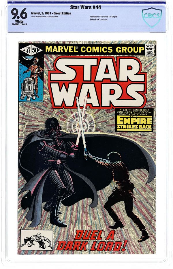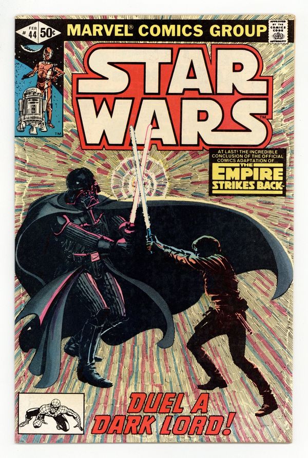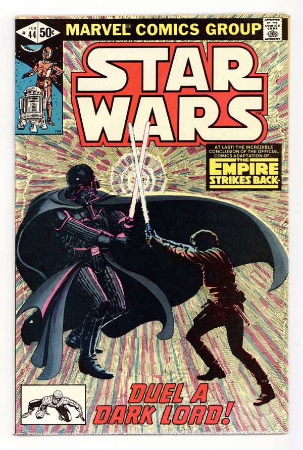 Direct Edition. The Empire Strikes Back: Part 6 of 6. "Duel a Dark Lord!" Script by Archie Goodwin, art by Al Williamson and Carlos Garzon. Note: Part 6 of movie adaptation; based on the movie script; Williamson and Garzon both pencil and ink the art for this series. Plus: pin-ups by Walt Simonson, Joe Jusko, Fred Hembeck, Bob Layton and Marshall Rogers. Also: letters page commentary and farewell by Goodwin. Cover by Williamson and Garzon. Cover price $0.50.
