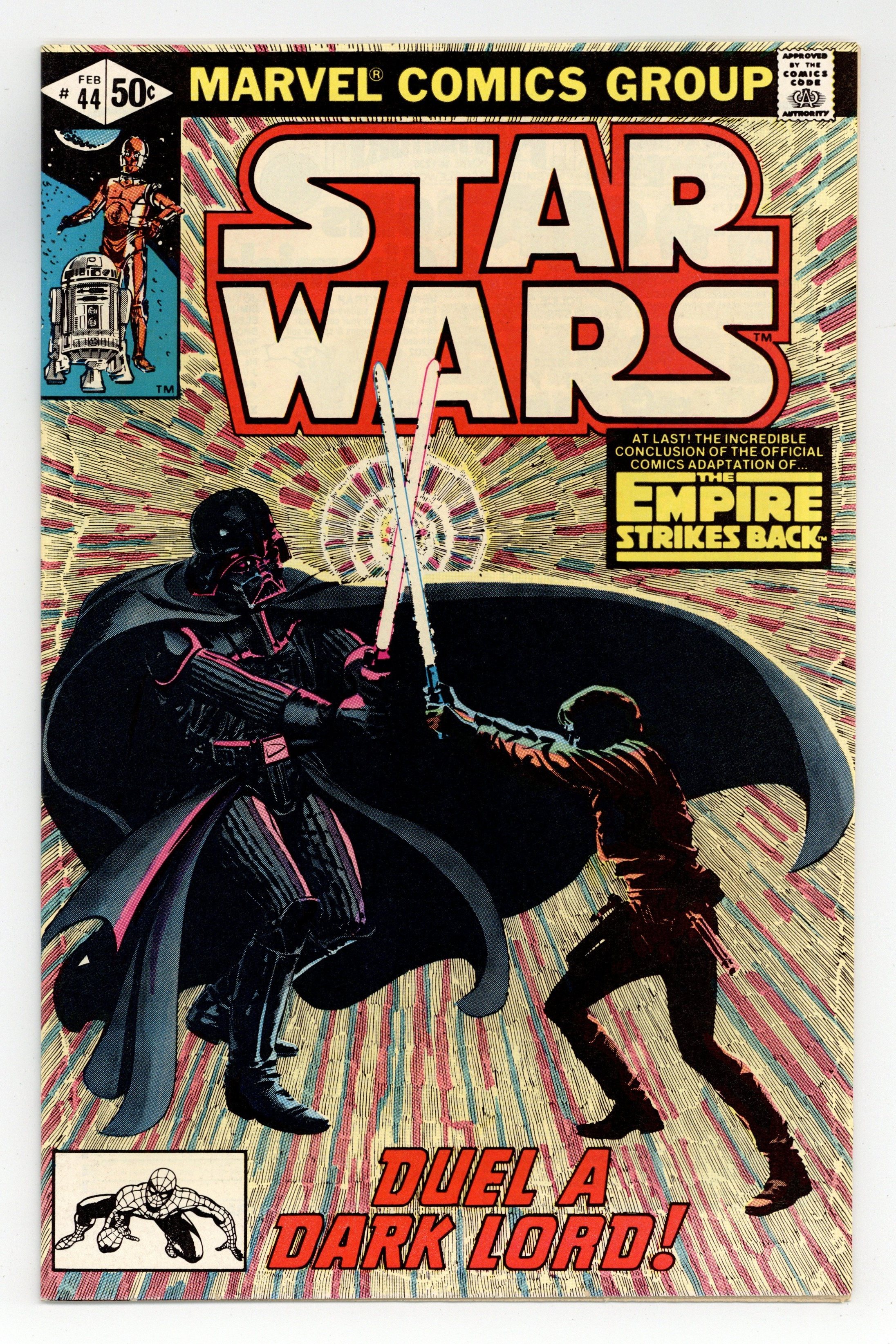 Tags: Star Wars Empire Strikes Back (part 6), Star Wars$22.00Direct Edition. The Empire Strikes Back: Part 6 of 6. "Duel a Dark Lord!" Script by Archie Goodwin, art by Al Williamson and Carlos Garzon. Note: Part 6 of movie adaptation; based on the movie script; Williamson and Garzon both pencil and ink the art for this series. Plus: pin-ups by Walt Simonson, Joe Jusko, Fred Hembeck, Bob Layton and Marshall Rogers. Also: letters page commentary and farewell by Goodwin. Cover by Williamson and Garzon. Cover price $0.50.