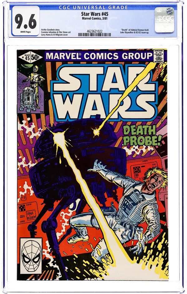 Direct Edition. Cover pencils by Larry Hama, inks by Al Milgrom. "Death Probe," script by Archie Goodwin, pencils by Carmine Infantino, inks by Gene Day (pages 1-21, 28-30) and Chic Stone (pages 22-27); The Rebels encounter a prototype of a new probe droid that is as deadly as any fighter! 36 pgs., full color. Cover price $0.50.