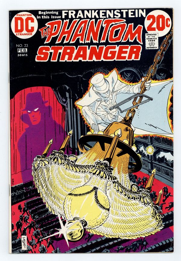 $18.25Cover art by Jim Aparo. "Panic in the Night!", script by Len Wein, art by Jim Aparo; In their quest to end the terror of the Dark Circle, the Phantom Stranger and Cassandra Craft end up in Paris; The city has been terrorized by the appearance of Quasimodo and the Phantom of the Opera; While attending the opera, the "Phantom" captures Cassandra; Going after the "Phantom," the Phantom Stranger learns that it's really his old foe Tannarak. "The Spawn of Frankenstein" Part 1, script by Marv Wolfman, art by Mike Kaluta; When Victor Adams, a colleague of Dr. Thirteen recovers the frozen remains of Frankenstein's Monster, he becomes determined to revive the creature; Even when the university he works for fires him for his proposed plan, Adams decides to continue with the project on his own; When his wife calls in Dr. Thirteen and his wife Marie, the two arrive just as Adams has used a laser device to revive the monster. 36 pgs., full color. Cover price $0.20.