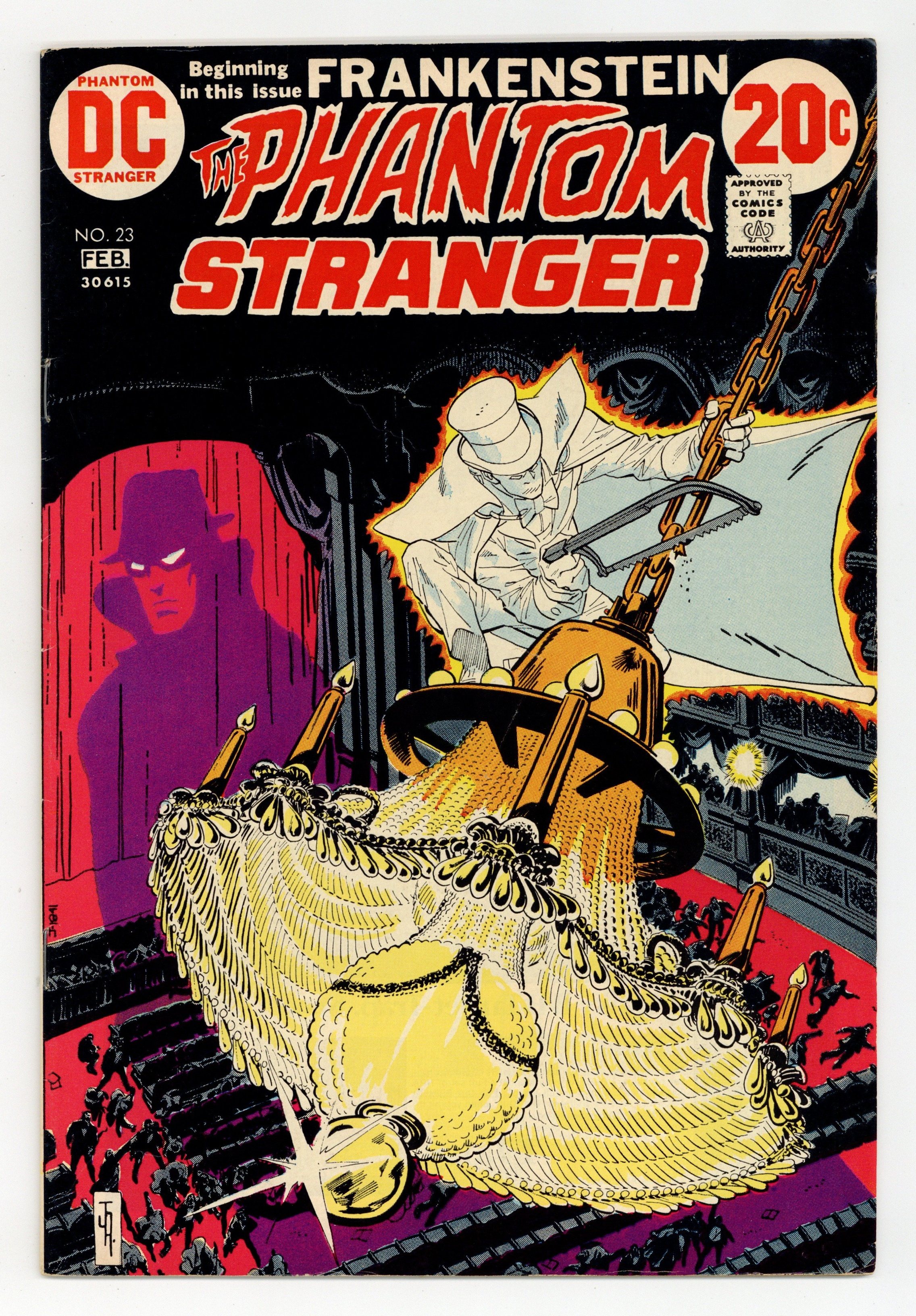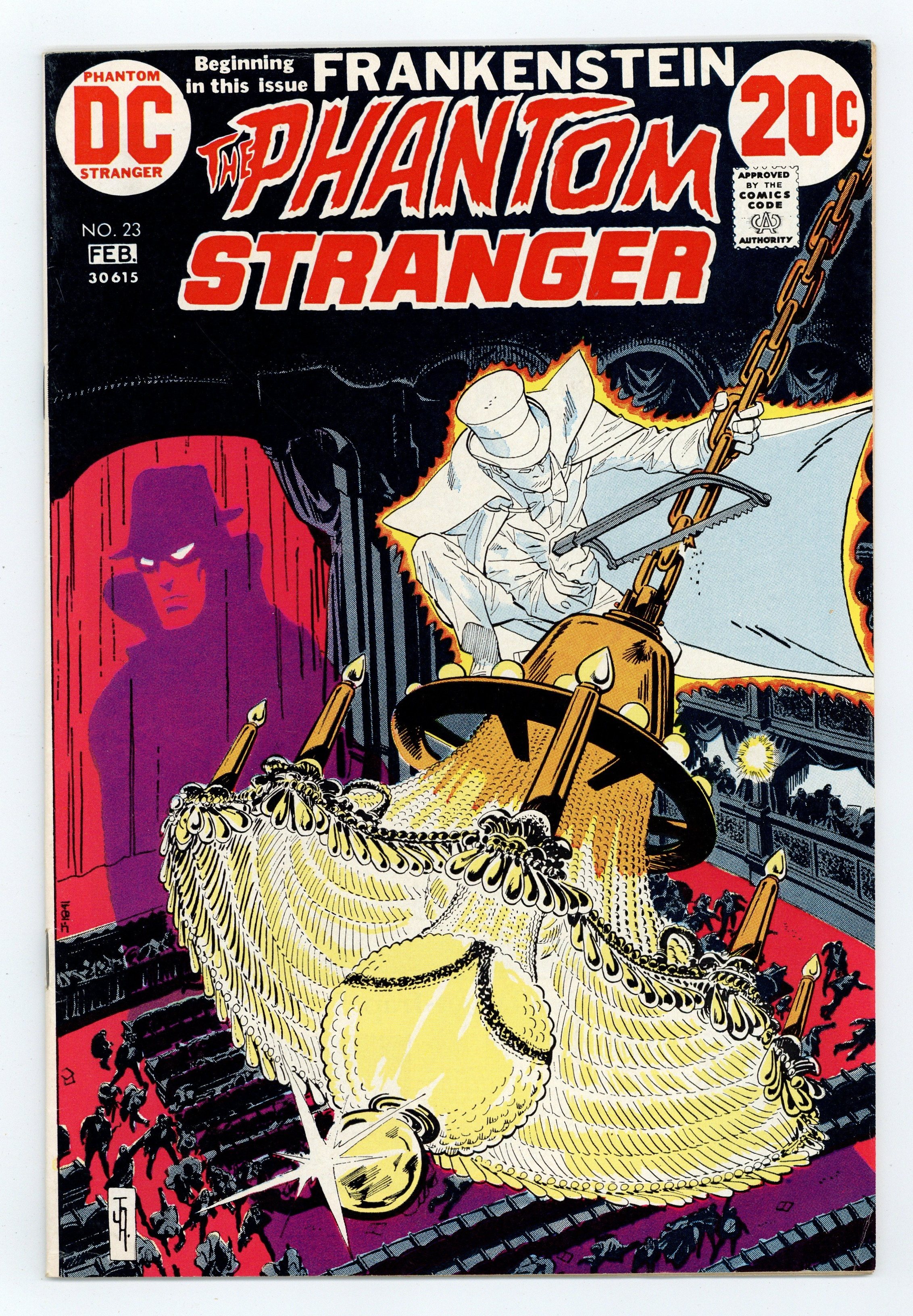Cover art by Jim Aparo. "Panic in the Night!", script by Len Wein, art by Jim Aparo; In their quest to end the terror of the Dark Circle, the Phantom Stranger and Cassandra Craft end up in Paris; The city has been terrorized by the appearance of Quasimodo and the Phantom of the Opera; While attending the opera, the "Phantom" captures Cassandra; Going after the "Phantom," the Phantom Stranger learns that it's really his old foe Tannarak. "The Spawn of Frankenstein" Part 1, script by Marv Wolfman, art by Mike Kaluta; When Victor Adams, a colleague of Dr. Thirteen recovers the frozen remains of Frankenstein's Monster, he becomes determined to revive the creature; Even when the university he works for fires him for his proposed plan, Adams decides to continue with the project on his own; When his wife calls in Dr. Thirteen and his wife Marie, the two arrive just as Adams has used a laser device to revive the monster. 36 pgs., full color. Cover price $0.20.