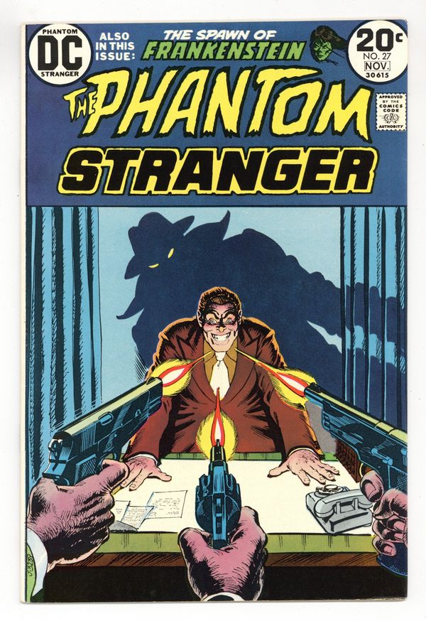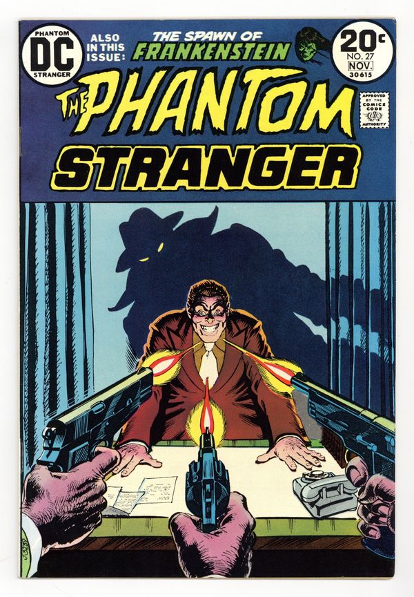 Cover art by Nick Cardy. "Dr. Zorn: Soul-Master," script by Arnold Drake, art by Gerry Talaoc; When the Phantom Stranger is present when a famous musician goes mad during one of his performances, he follows him to his doctor: Matthew Zorn. Zorn has a very famous clientele including celebrities and military personnel; The Stranger feigns illness so that he can go and see the doctor, and is given one of his special "medicines" which creates a powerful hallucination in which Phantom Stranger is ruler of the world; Shaking off the effects of the drugs, Phantom Stranger decides to investigate further. "The Terror and the Compassion," script by Steve Skeates, art by Bernard Baily; The Spawn of Frankenstein awakens from a dream to find a young woman about to be raped by her date; The Spawn scares the man and woman, and carries the fainted woman to safety; However, the man revives and tries to run down the Spawn, but the monsters strength and durability only ends up wrecking the car and not harming the monster; When the girl revives from her spell, she flees the monster and tries to get away, she ends up running into a cult who wishes to use her as a sacrifice in one of their black masses. 36 pgs., full color. Cover price $0.20.