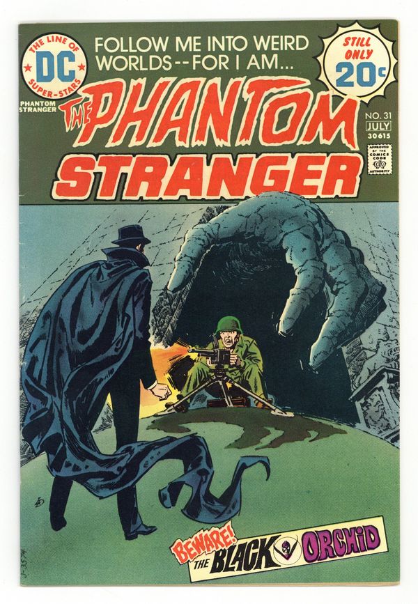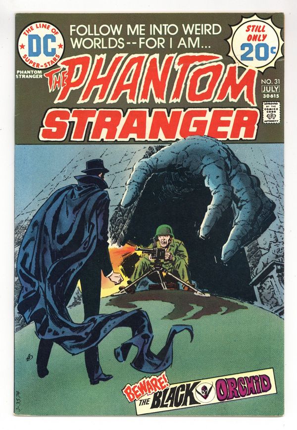 Cover art by Luis Dominguez. "Sacred Is the Monster Kang!", script by Arnold Drake, art by Gerry Talaoc; When soldiers of fortune take over an ancient temple where it's followers have spent generations building a giant maze to apparently keep a demon at bay, they intend to sell the men off to slavery; However, one of these soldiers is an opium addict named Jones is visited by the Phantom Stranger, who tries to convince Jones to shake off his dependencey on the drug (which is the reason why he is part of this operation) and do what's right before it's too late. "Island of Fear!" featuring Black Orchid, script by Sheldon Mayer, art by Tony DeZuniga. 36 pgs., full color. Cover price $0.20.