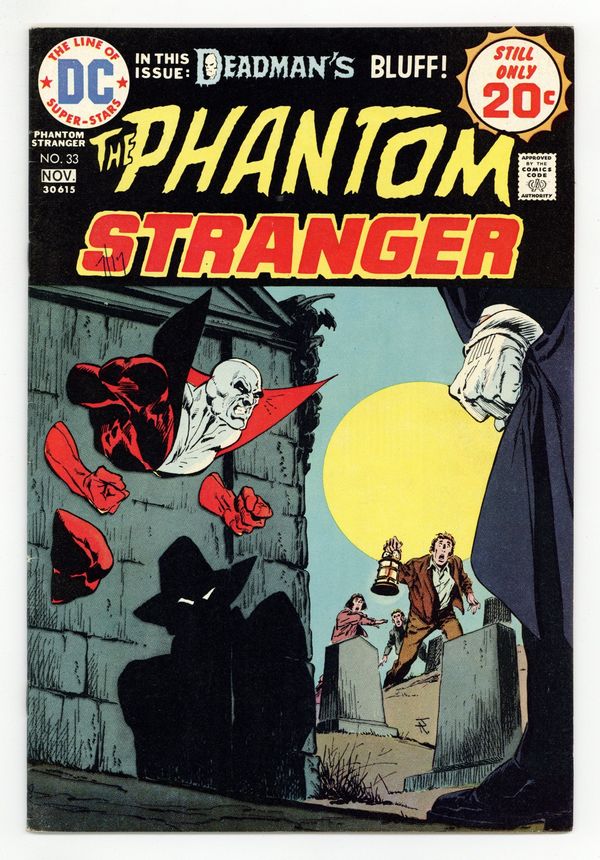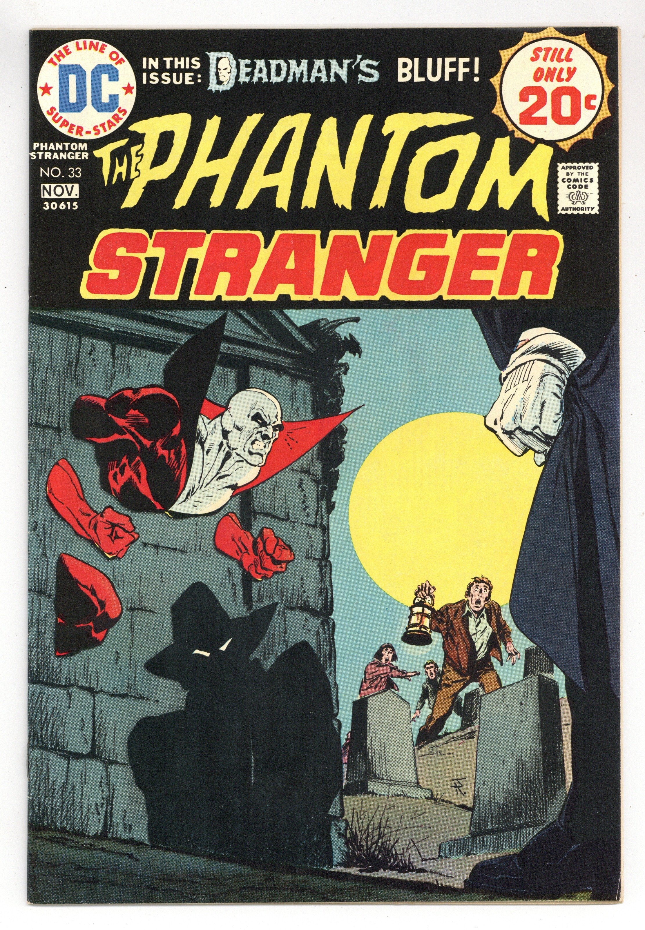 Cover art by Jim Aparo. "Deadman's Bluff!", script by Arnold Drake, art by Mike Grell; When Lou Ubric, owner of Ubric Investment Corp. and secretly a crime boss, goes to see his Doctor, Dr. Zorn, Zorn uses his powers of manipulation to motivate his own agenda; Reviewing Ubric's patient tapes, he learns of his involvement in the murder of Boston Brand; Now knowing of the existence of Deadman, Zorn uses his mental powers to call Phantom Stranger; He records a conversation with the Stranger, and later edits the tape so, that the Stranger sounds as though he is confessing to the murder of Boston Brand; When Deadman arrives, he possesses Zorn and plays the tape; When the Stranger hears his own false confession, he tries to fight Zorn, but soon learns that Deadman is in control of Zorn's body; Deadman learns that the information about his murder came from Ubric originally, and so Deadman goes after him. Letters page "Mail to the Phantom Stranger" includes letter from Mark Verheiden. 36 pgs., full color. Cover price $0.20.