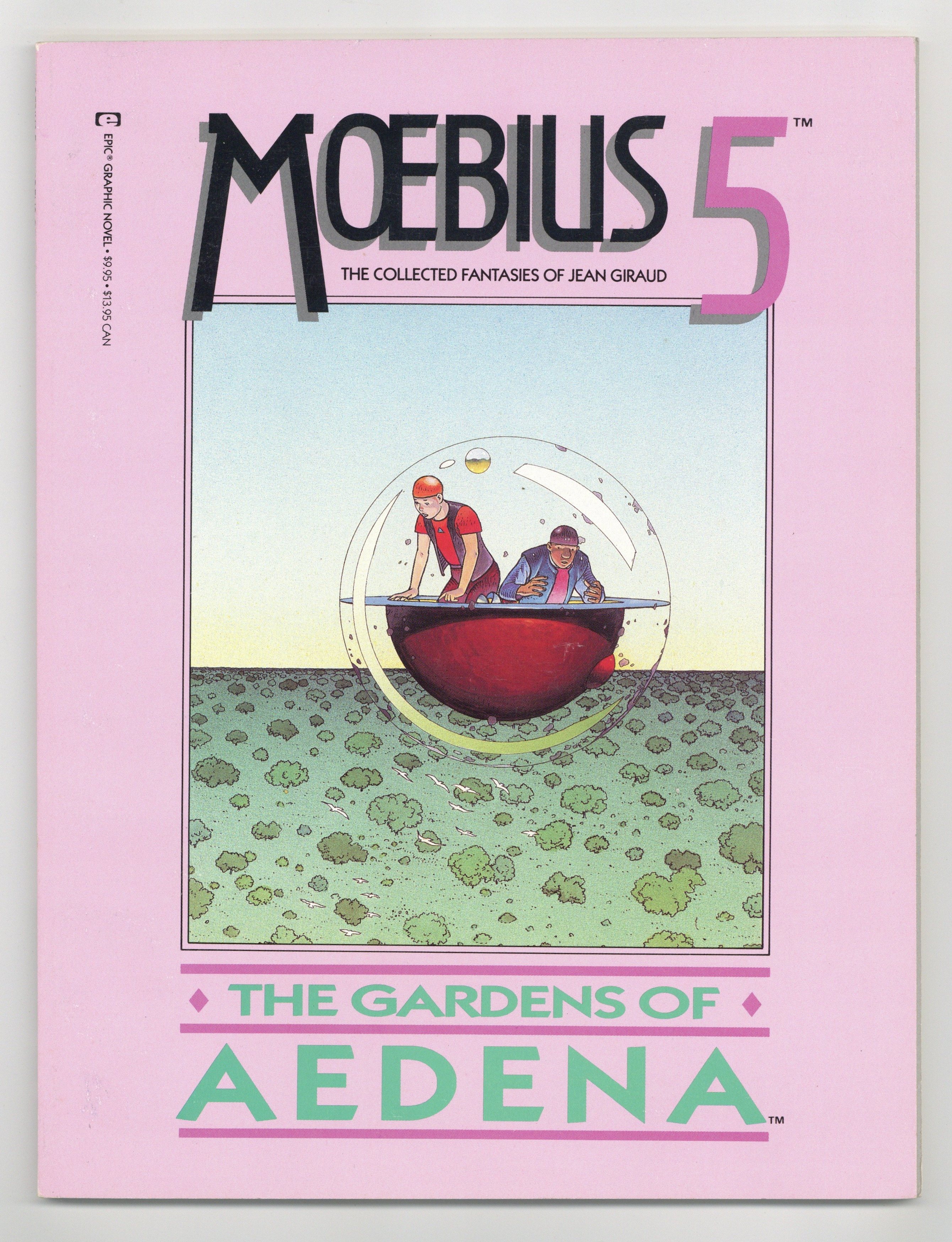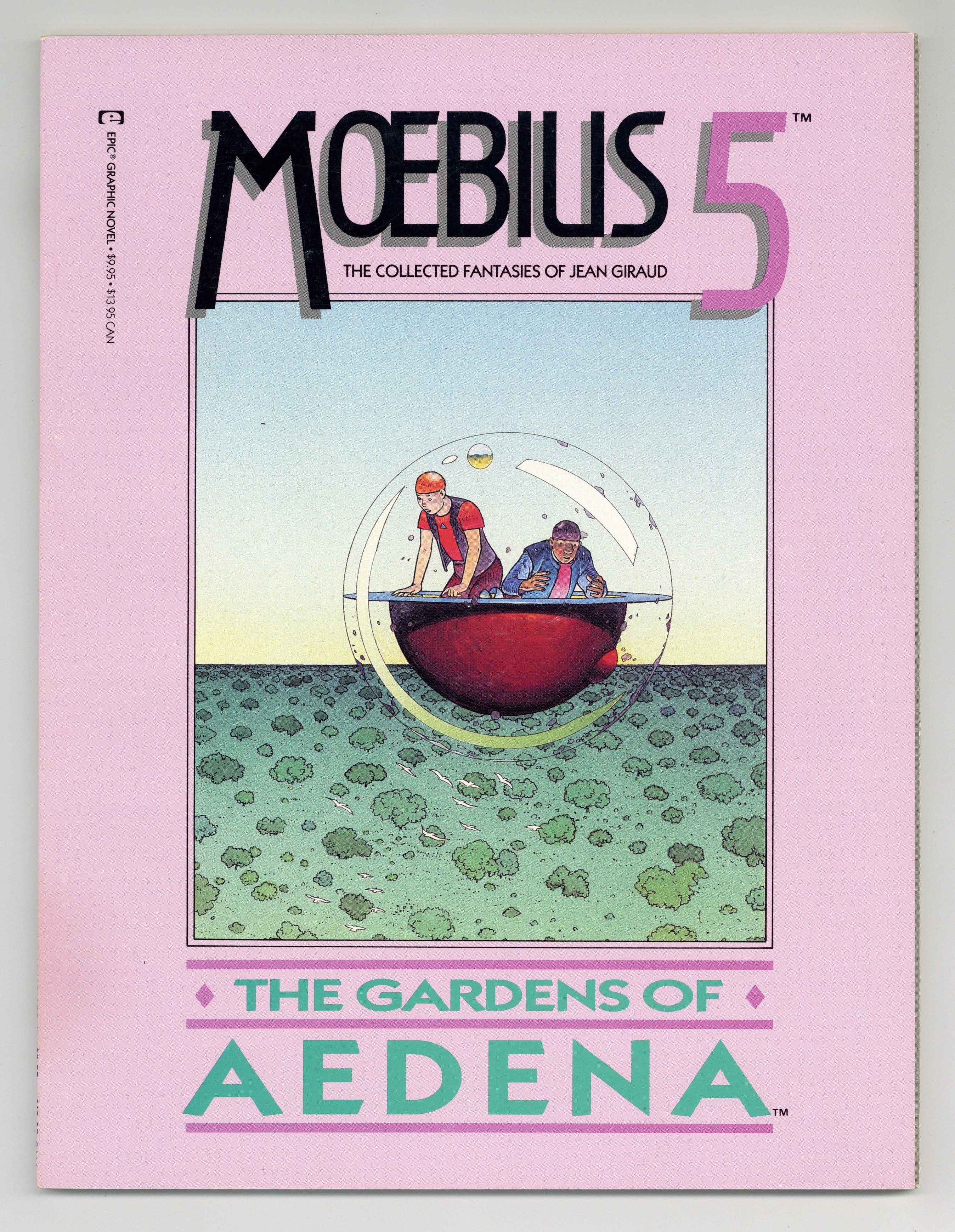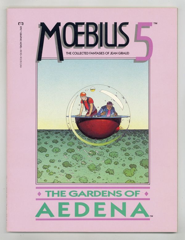 Published 1988 by Marvel/Epic.$50.00Volume 5 - 1st printing. "The Gardens of Aedena!" Story and art by Jean "Moebius" Giraud. Softcover, 8-in. x 11-in., 64 pages, full color. Mature Readers Cover price $9.95.