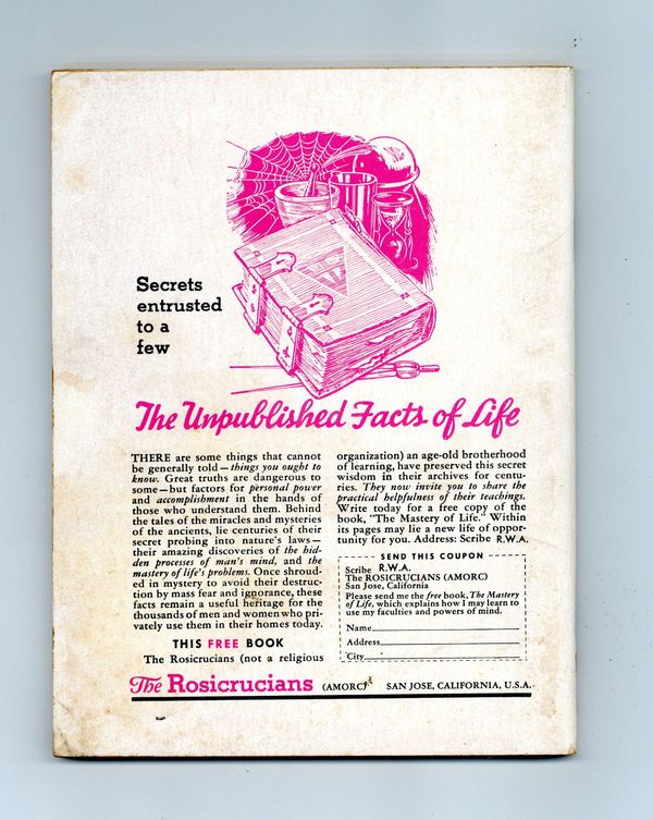 Edited by Ray Palmer. Articles about visitations from other worlds and American efforts at space travel. 5 1/2-in. x 7 1/4-in. 100 pages, B&W. Cover price $0.35.