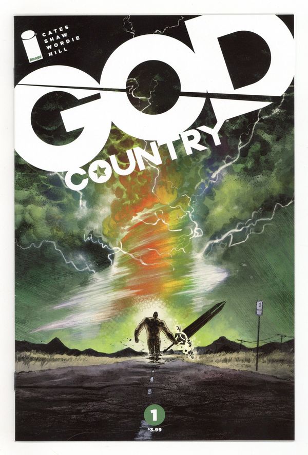 Written by Donny Cates. Art by Geoff Shaw and Jason Wordie. Cover by Geoff Shaw and Dave Stewart. SERIES PREMIERE Emmet Quinlan, an old widower rattled by dementia, isn't just a problem for his children-his violent outbursts are more than the local cops can handle. When a tornado levels his home-as well as the surrounding West Texas town-a restored Quinlan rises from the wreckage. The enchanted sword at the eye of the storm gives him more than a sound mind and body, however. He's now the only man who can face the otherworldly creatures the sword has drawn down to the Lone Star State... 28 pages, full color. Rated M Cover price $3.99.
