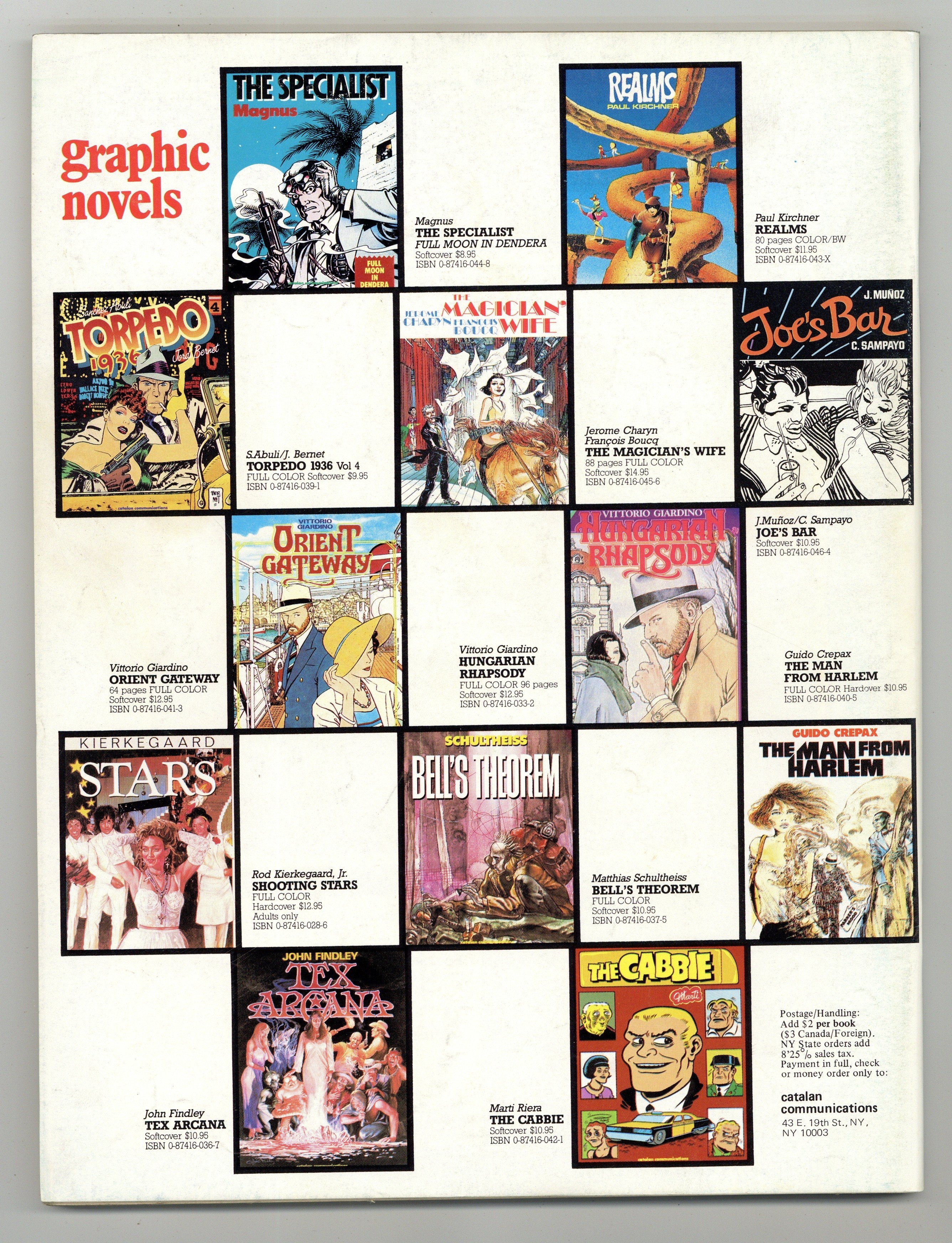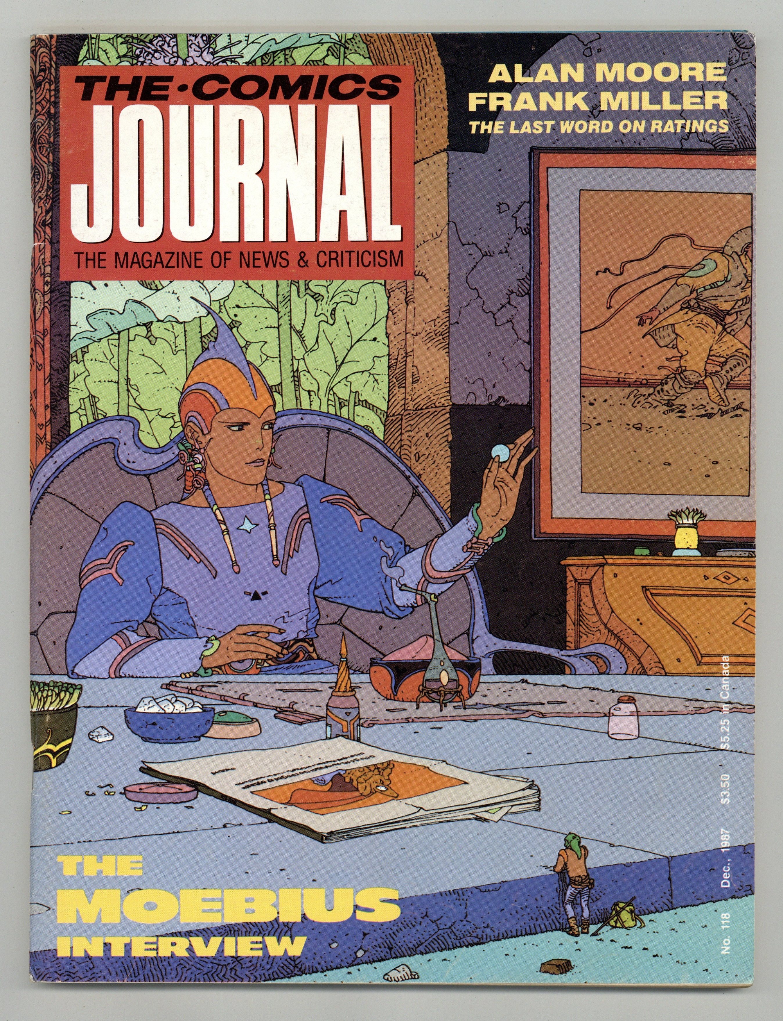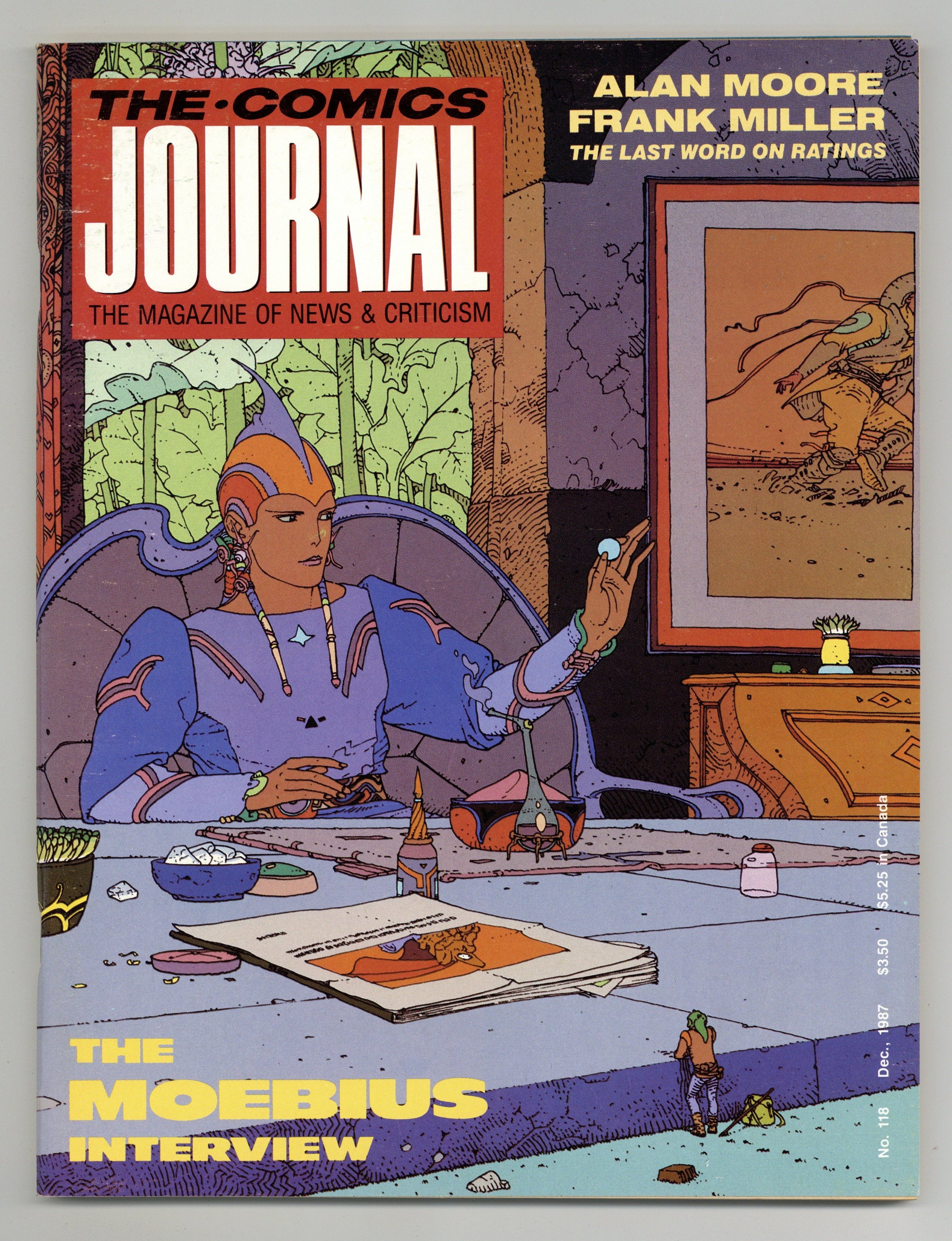 Published Dec 1987 by Fantagraphics.$22.00Cover by Moebius. Interviews with Moebius and editorial cartoonist Tony Auth. Alan Moore and Frank Miller on the comics ratings controversy. Illustrations by Charles Burns. Coverage of the 1987 San Diego comic convention. Plus reviews, columns, letters, and news. Cover by Moebius. Black and white. Cover price $3.50.