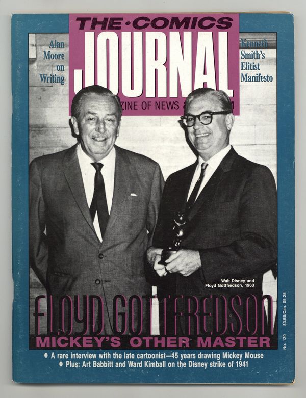 Published Mar 1988 by Fantagraphics.$12.00Interview with the good mouse artist, Floyd Gottfredson, on 45 years of drawing Mickey Mouse. Animators Art Babbitt and Ward Kimball on the Disney strike of 1941. Alan Moore on writing comics, part two. A Peter Kuper sketchbook. Plus reviews, columns, letters, and news. Black and white. Cover price $3.50.