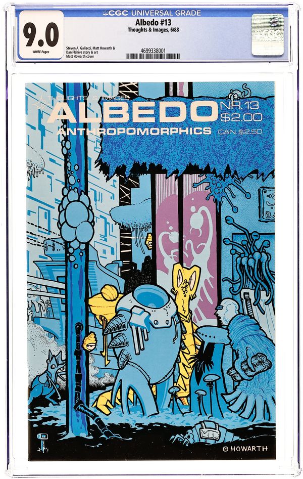 Cover art by Matt Howarth. Untitled Erma Felna story, script and art by Steven A. Gallacci; Artifacts, including a body are removed from the derelict; All point to the progenitors of the races of the sector; This is the first hard evidence anyone has found. Debt: Chapter 3 starring konny and czu, script and art by Matt Howarth. The Origin of Space Wolf Part 1, script and art by Dan Flahive; Setting out on a raid, Paxton reviews the highlights of history and how things had come to this point. 36 pgs. $2.00. Cover price $2.00.