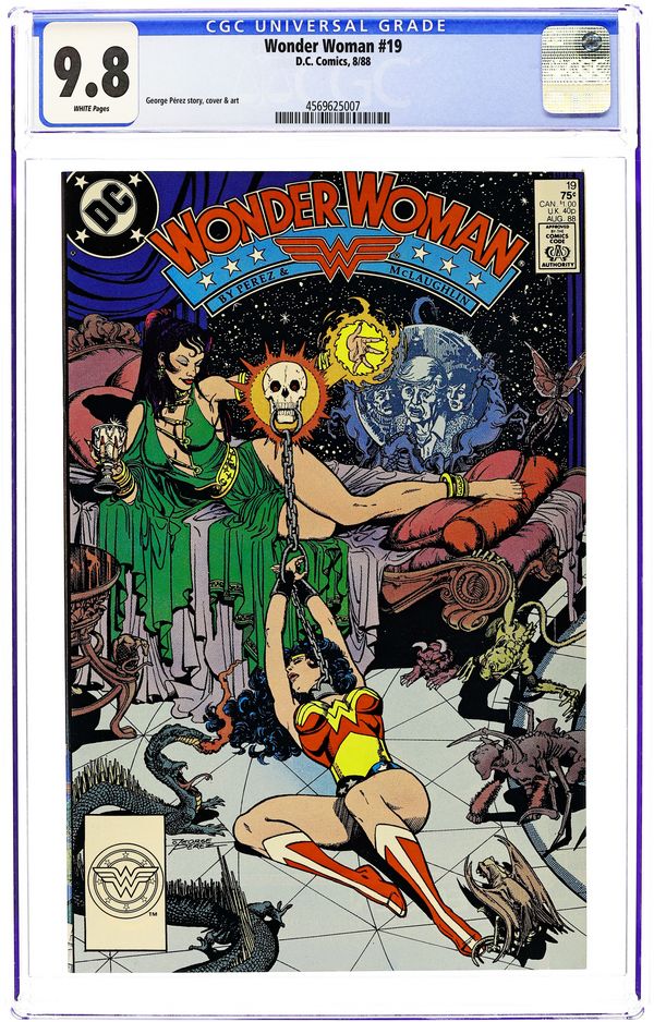 Held captive, Diana learns of Circe's past and deadly plans in "The Witch on the Island". Part 3 of 3, continued from the previous issue. Script and pencils by George Perez, finishes by Frank McLaughlin. Perez cover. NOTE: 1st Printing. Reprints later sold in multi-packs. 36 pgs. Cover price $0.75.