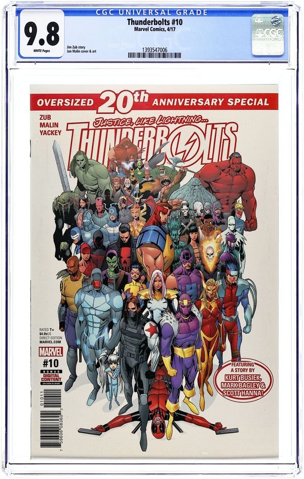 $12.00Return of the Master: Part 1 - Written by Jim Zub and Kurt Busiek. Art by Jon Malin and Mark Bagley. Cover by Jon Malin. 20TH ANNIVERSARY ISSUE! Once upon a time the Thunderbolts were the Masters of Evil…and if Baron Zemo has his way, their legacy will be reclaimed…with the infinite power of a Cosmic Cube! Captain America's sinister plan for Bucky and Kobik begins to unfold. 'Return of the Masters,' the Thunderbolts 20th anniversary event, begins here! Along with our pulse-pounding lead story, this special oversized issue includes a brand-new Thunderbolts tale by series co-creators Kurt Busiek and Mark Bagley! 36 pages, full color. Rated T+ Cover price $4.99.