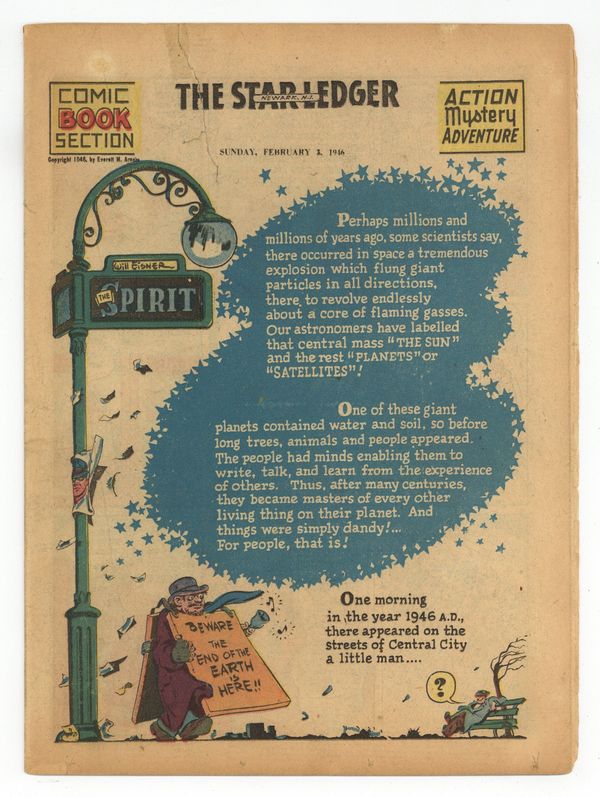 Published Feb 1946 by Promotional.$77.00Spirit Weekly Newspaper Comic Insert. 7-1/2 x 10 inches, 16 pages, full color, all newsprint with no slick cover. Scripts/layouts by Eisner, Eisner/Nordling, Eisner/Mercer, or Spranger/Eisner; inks by Eisner or Eisner/Spranger.