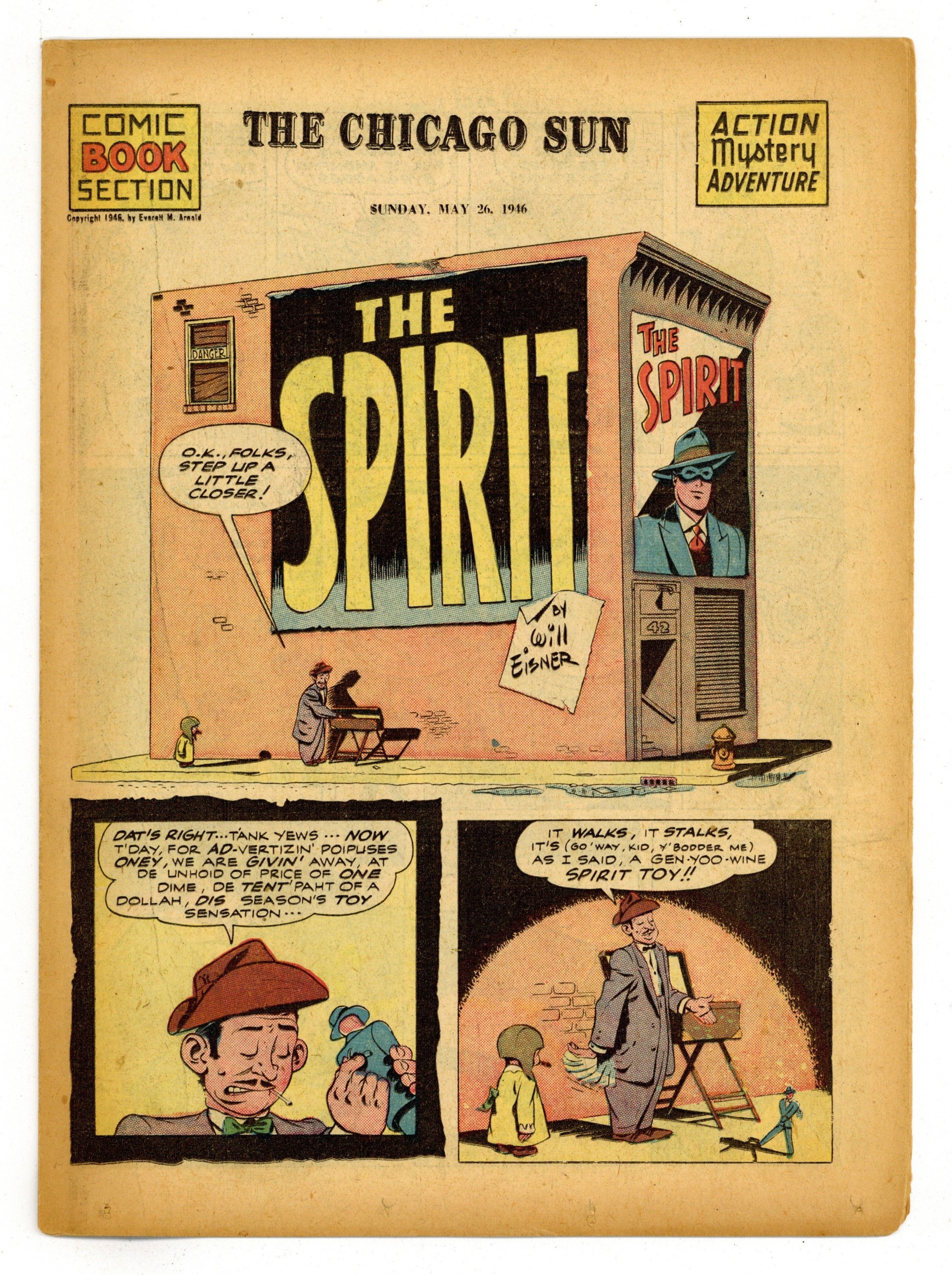 Published May 1946 by Promotional.$53.00Spirit Weekly Newspaper Comic Insert. 7-1/2 x 10 inches, 16 pages, full color, all newsprint with no slick cover. Scripts/layouts by Eisner, Eisner/Nordling, Eisner/Mercer, or Spranger/Eisner; inks by Eisner or Eisner/Spranger. Lady Luck by Fred Schwab.