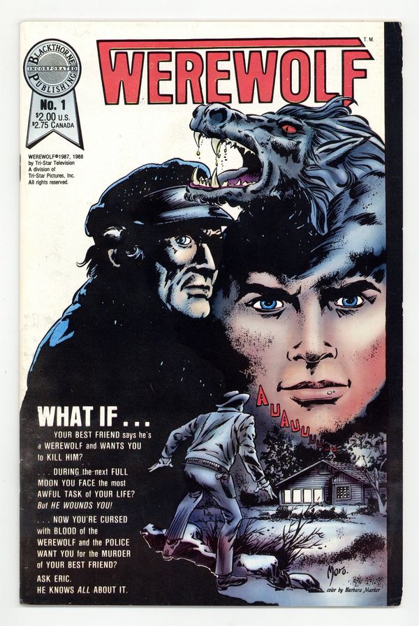Published Jul 1988 by Blackthorne.$19.50Nightwatch. Story by Lance Hampton, Chris Rutowksi, Adrian Moro, and John Stephenson. Art by Donnie Jupiter. Blackthorne Publishing presents an adaptation of the horror TV series that ran from 1987-88. Each issue is based on an episode of the show. Fugitive Eric Cord hunts the werewolf Skorzeny, the only way to end his own werewolf curse. Seeking Skorzeny in a shipyard, Eric is captured by sailors who want to turn him over to the bounty hunter Rogan. 32 pages, B&W. Cover price $2.00.