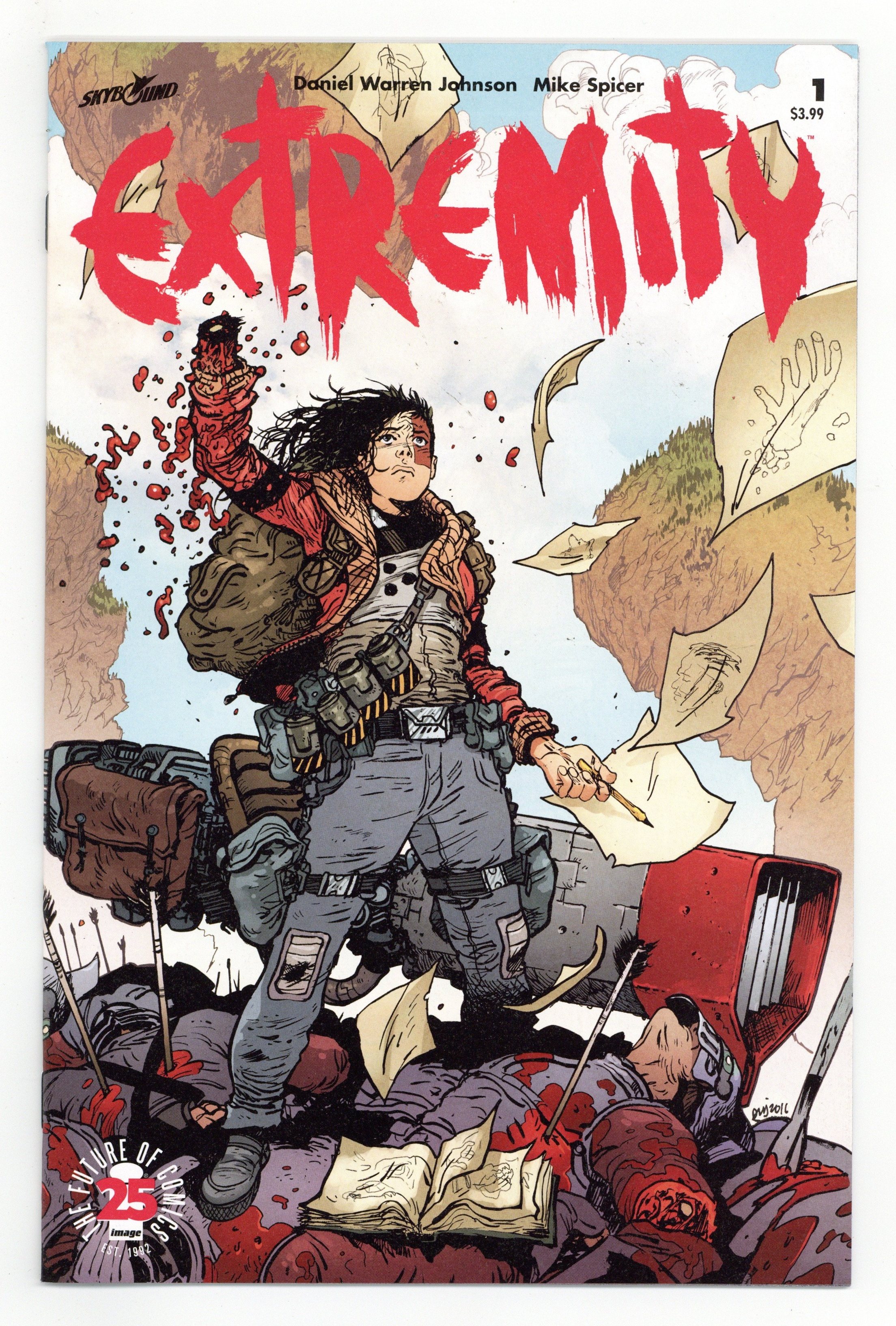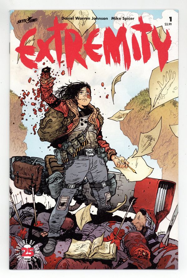 $17.00Story, Art and Cover by Daniel Warren Johnson. SERIES PREMIERE! Thea dreams. Not of a better life, but of revenge on the clan that ruined her family. With ferocious battles between man, machines, and monsters ahead…who knows where her quest for vengeance will take her? Creator DANIEL WARREN JOHNSON (Space Mullet) and colorist MIKE SPICER present a bold new vision, where the beauty and imagination of Studio Ghibli meet the intensity of Mad Max, in this all-new Skybound Original. 28 pages, full color. Rated T+ Cover price $3.99.