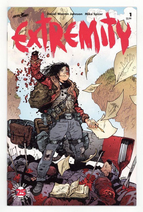 $20.00Story, Art and Cover by Daniel Warren Johnson. SERIES PREMIERE! Thea dreams. Not of a better life, but of revenge on the clan that ruined her family. With ferocious battles between man, machines, and monsters ahead…who knows where her quest for vengeance will take her? Creator DANIEL WARREN JOHNSON (Space Mullet) and colorist MIKE SPICER present a bold new vision, where the beauty and imagination of Studio Ghibli meet the intensity of Mad Max, in this all-new Skybound Original. 28 pages, full color. Rated T+ Cover price $3.99.