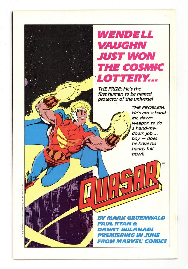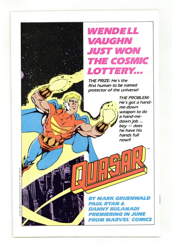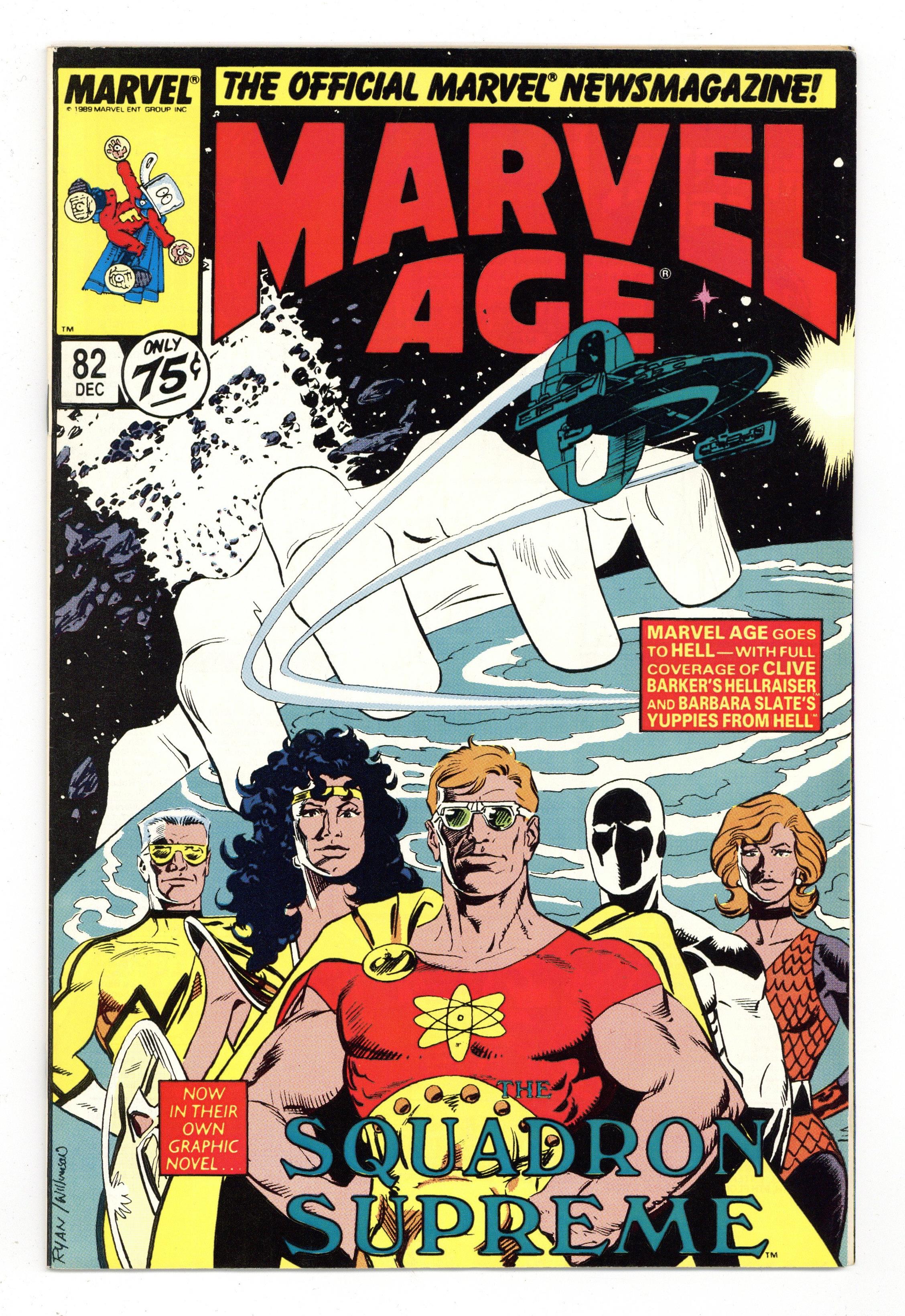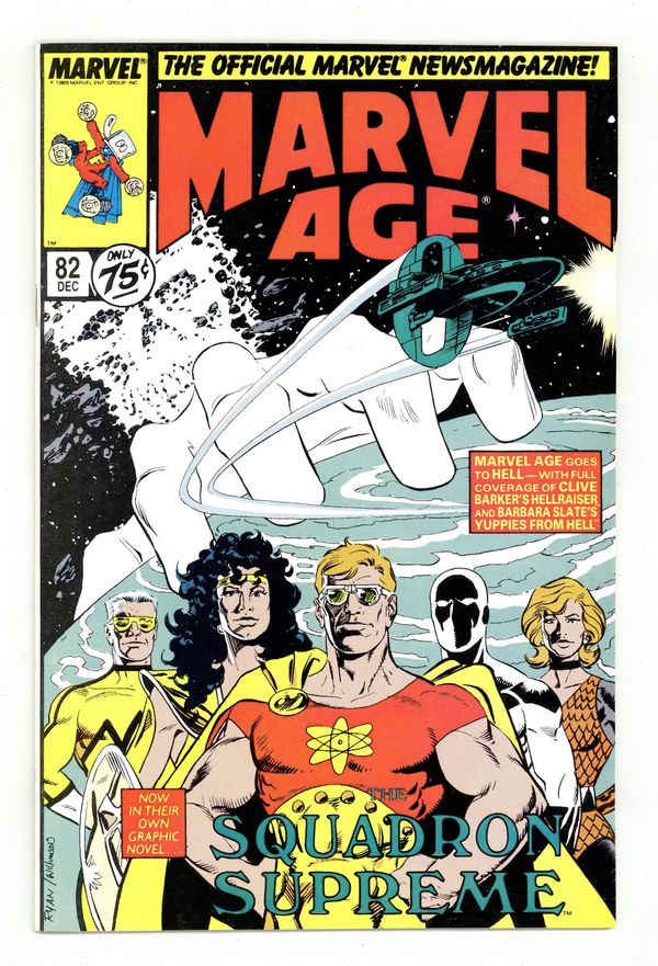 $8.00Rob Liefeld's New Mutants Sketchbook II; Mark Gruenwald discusses Squadron Supreme: Death of a Universe graphic novel; 2-page Fred Hembeck strip; a look at Epic's Nightbreed, Hellraiser and The Art of Moebius; Barbara Slate discusses Yuppies from Hell. Squadron Supreme cover by Paul Ryan and Al Williamson. Cover price $0.75.