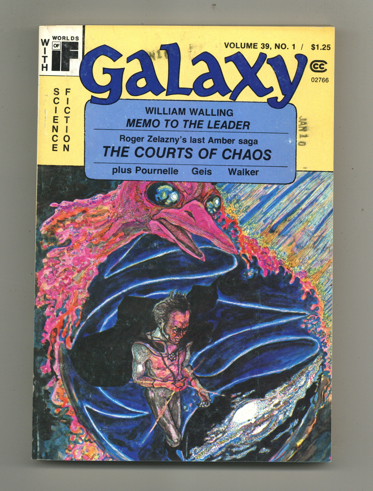 Published Dec 1977 by Galaxy Publications.$8.49December 1977-January 1978. Cover by Joan Woods. Science Fiction Stories by William Walling, Roger Zelazny, Timothy P. Lewis, Tim Joseph, Lee Whipple, Jesse Peel. Interior Illustrations by Anji Valenza, Jim Mueller, Amy Harlib, Joan Hanke-Woods. Softcover Pulp Digest, 5-in x 7 1/2-in, 160 Pages, B&W. Cover price $1.25.