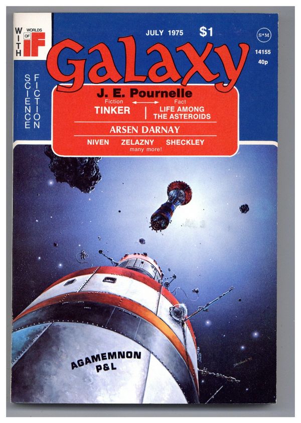 Published Jul 1975 by Galaxy Publications.$18.00Cover by Rick Sternbach. Science fiction stories by Jerry Pournelle, Jon DeCles, Robert Sheckley, William Chait, Sam Nicholson, Arsen Darnay. Illustrations by Jack Gaughan, Rich Sternbach, Stephen Fabian, Freff. 5-1/8 in. x 7-5/8 in.; black and white; 160 newsprint pages. Cover price $1.00.