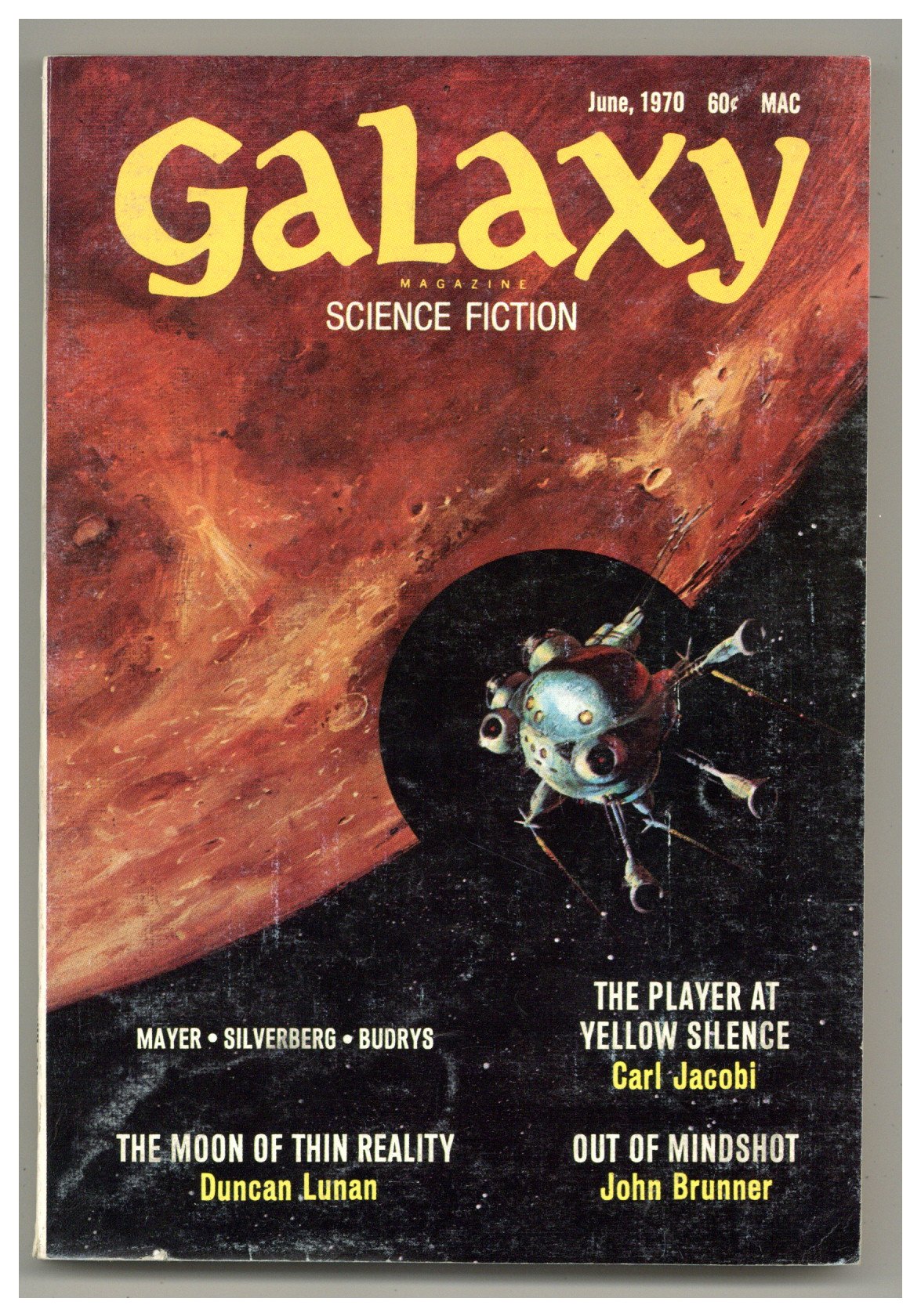 Published Jun 1970 by Galaxy Publications.$15.00Cover by Jack Gaughan. Science fiction stories by Carl Jacobi, John Brunner, William Rotsler, Hayden Howard, Duncan Lunan, Lawrence Mayer, Robert Silverberg. Illustrations by Gaughan, Rotsler. Softcover Pulp Digest, 5-in. x 7-in.; 162 Pages, B&W. Cover price $0.60.