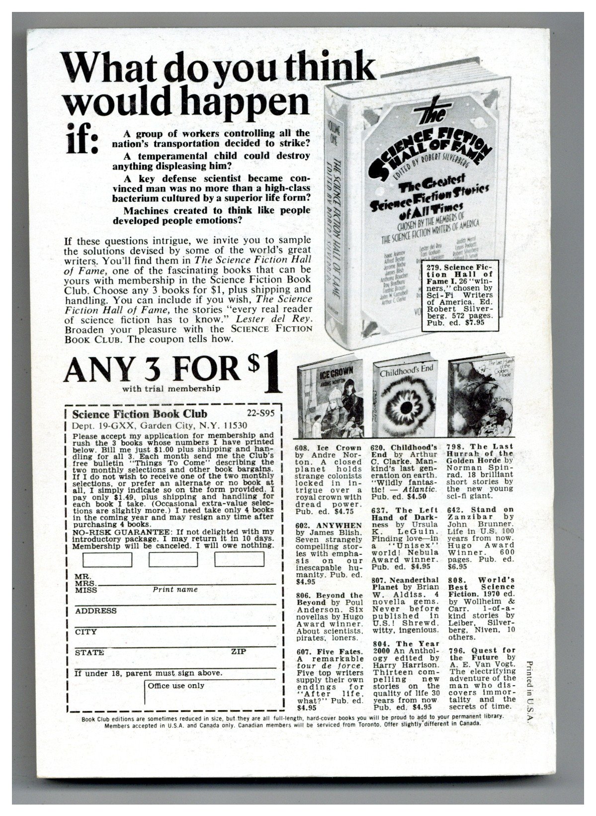 September-October 1971. Cover by Jack Gaughan. Science fiction stories by Gordon Eklund, Theodore Sturgeon, A. Bertram Chandler, Duncan Lunan, Jack Williamson, Alan Dean Foster. Illustrations by Gaughan. 5-1/4-in. x 7-1/4-in.; b&w text with spot illustrations; 176 newsprint pages. Cover price $0.75.