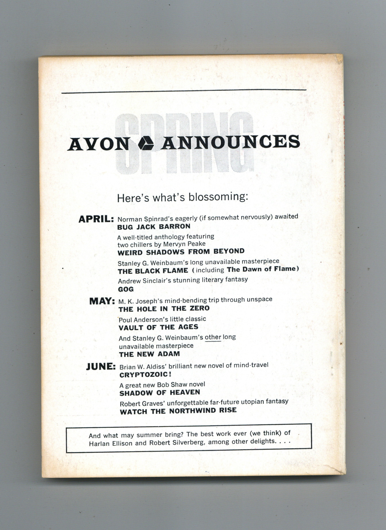 Published May 1969 by Quinn Publishing Co..$24.00May 1969. Volume 19, No. 5 (Whole No. 138) Cover by Johnny Bruck. Science fiction stories by Robert Bloch, C. C. Macapp, Robert Weinberg, Perry Chapdelaine, Andre Norton. Illustrations by Jack Gaughan, Dan Adkins. 5.25-in. x 7.5-in.; black and white; 162 newsprint pages. Cover price $0.60.