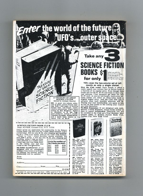 February 1969. Volume 19, No. 2 (Whole No. 135) Cover by Vaughn Bode. Science fiction stories by Burt Filer, Harry Harrison, Andrew J. Offutt, Roger F. Burlingame, James Gunn, J. T. McIntosh. Illustrations by Jack Gaughan, Brock, Rudy Cristiano. 5.25-in. x 7.5-in.; black and white; 162 newsprint pages. Cover price $0.60.