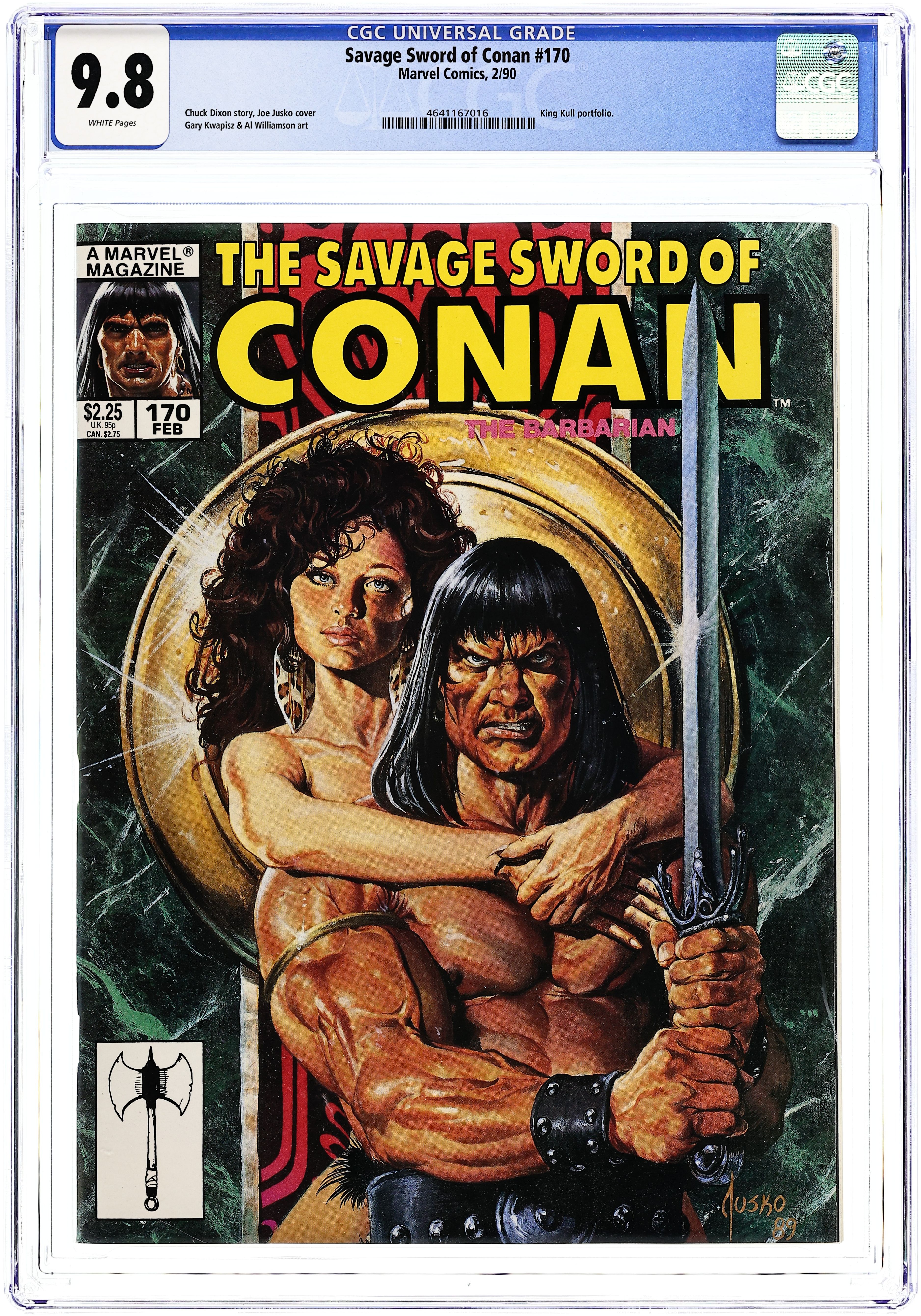 Conan and Red Sonja star in "Emerald Lust." Script by Chuck Dixon, art by Gary Kwapisz. King Kull portfolio with pencils by Steve Carr, inks by Al Williamson. Pin-ups by Garvey and Jorgensen. Ovi frontispiece. Fred Carrillo back cover. Joe Jusko front cover. Cover price $2.25.