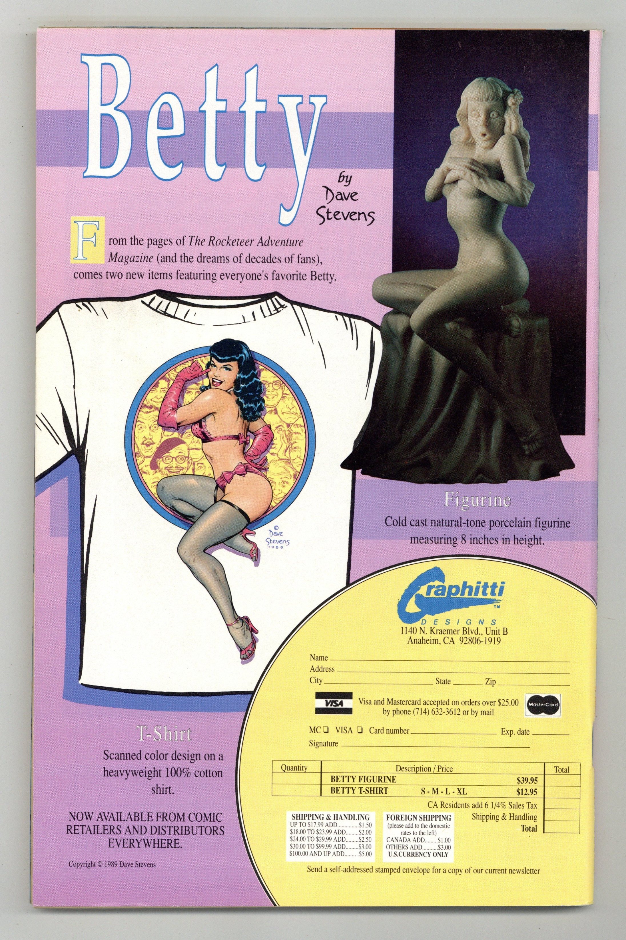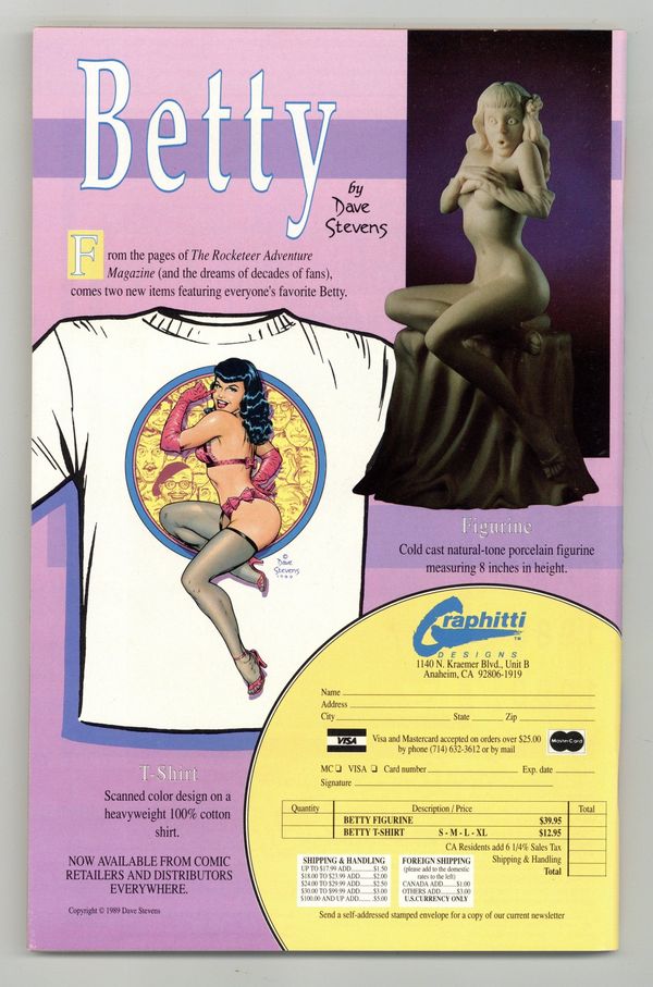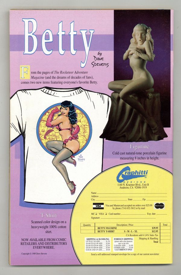 Published Jun 1990 by Fantagraphics.$30.00Contributors for the all-pinup issue include: Charles Vess, Mark Badger, Paul Chadwick, Graham Nolan, Trina Robbins, Ron Boyd, Ty Templeton, James O'Barr, Erik Larsen, Bruce Timm, Sam Kieth, Stan Sakai, William Messner-Loebs, Eddie Campbell, Joseph M. Linsner, Mitch O'Connell, Richard Howell, John Workman, Evan Dorkin, Neil Vokes, Adam Hughes, Fred Hembeck, Doug Mahnke, Guy Davis, Michael T. Gilbert, Kurt Schaffenberger, Will Meugniot, Norm Breyfogle, Hilary Barta, Eric Shanower and many more. Cover features Reed Waller and Kate Worley's Omaha the Cat Dancer. Cover price $5.95.