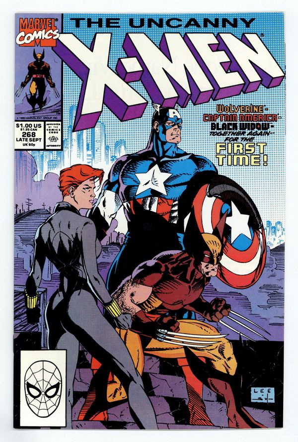 1st Printing. Direct Edition. "Madripoor Knights!" Guest-starring Captain America and Black Widow. Story by Chris Claremont. Art by Jim Lee and Scott Williams. Cover by Jim Lee. In this classic flashback tale, during the second World War, a mysterious man by the name of Logan and a rookie Sentinel of Liberty must team up against the deadly Hand to save the life of a young girl. Meanwhile in the present, Wolverine, Jubilee, Psylocke, and Black Widow finish a caper that began nearly fifty years earlier. NOTE: JC Penney reprint exists with 30th Anniversary Spider-Man in UPC Box. 36 pgs. Cover price $1.00.