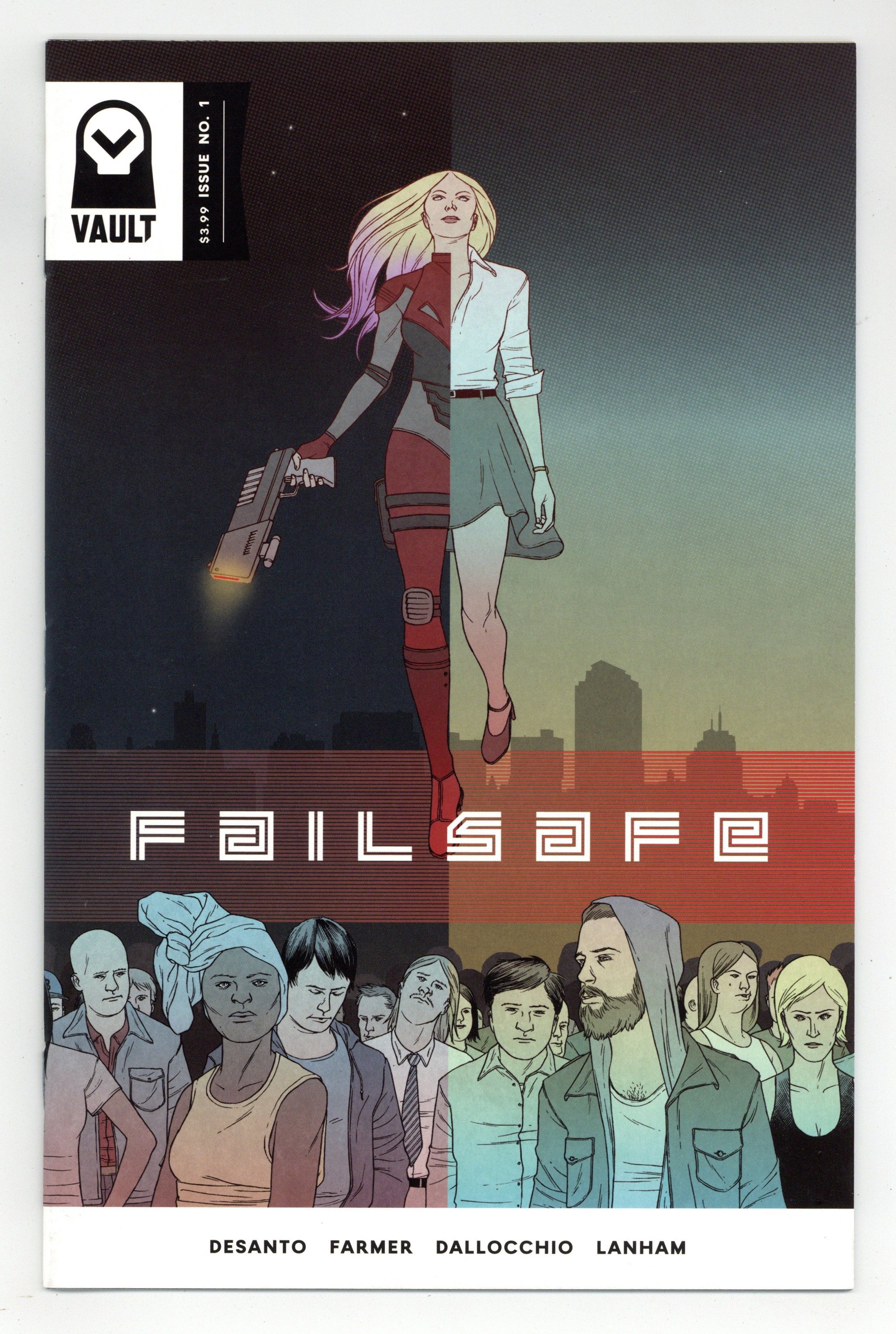 Published Apr 2017 by Vault Comics.$4.50Written by F. j. Desanto and Todd Farmer. Art by Federico Dallocchio. Cover by Jon Adams. When he executed the last nanotech-enhanced super soldier, John Ravane thought that was the end of the haywire Insurgence Program. Ten years later, in the wake of social unrest, its true legacy is revealed. As sleeper agents scattered throughout the country activate, Ravane must stand between a government he cannot trust and the soldiers he once hunted. 24 pages, full color. Cover price $3.99.