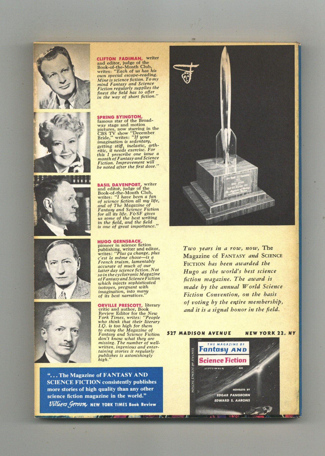Published Oct 1960 by Mercury Publications.$15.00Cover by Chesley Bonestell. Fantasy and science fiction stories by James Blish, Allen Drury, Arthur C. Clarke, Poul Anderson, Richard Matheson, Katherine Maclean, Howard Fast, Grendel Briarton, Wade Miller, Philip Jose Farmer. Softcover, 5 1/2-in. x 7 1/2-in., 128 pages, black and white (text). Cover price $0.40.