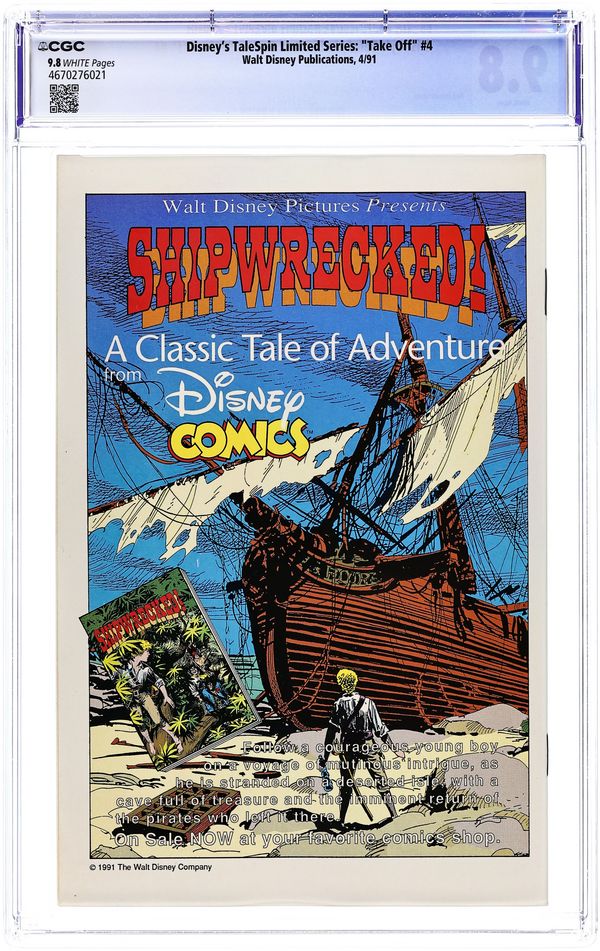Direct Edition. Take Off: Part 4 of 4 - "Plunder and Lightning!" Adapted by Bobbi JG Weiss. Art by Cosme Quartieri and Robert Bat. Can Kit and Baloo get past their difference and reunite in time to stop the dread pirate Don Karnage and his Iron Vulture before he destroys Cape Suzette? Don't miss the exciting final chapter of the origin tale. FC, 32 pages Cover price $1.50.