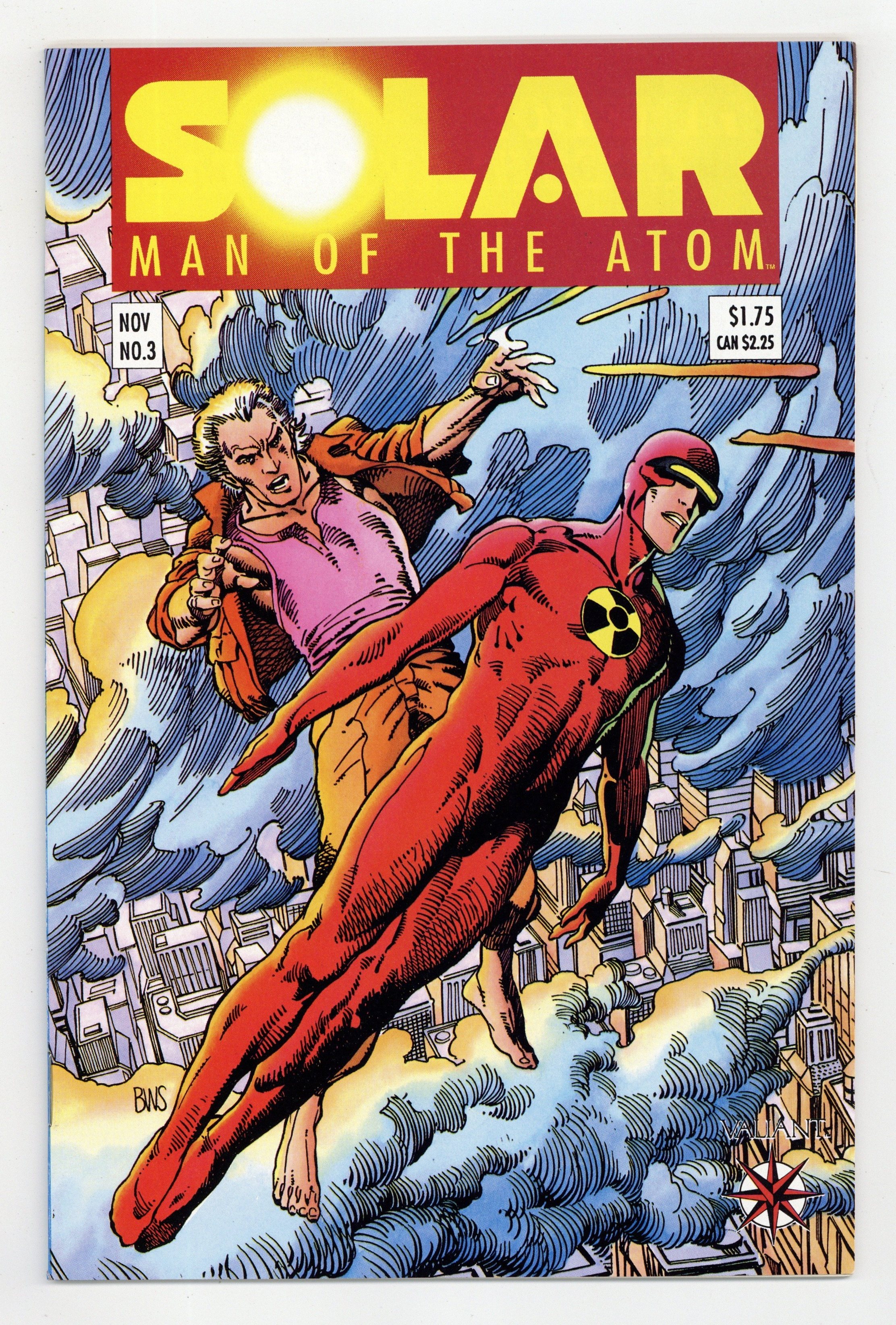 $23.00Dr. Solar Man of the Atom tries to find a place in the world for someone like himself and goes to the Harbinger Foundation in "Second Death Part Three – Reality Check." Script by Jim Shooter and art by D. David Perlin & Bob Layton & Thomas Ryder. Issue also has part three of "Alpha and Omega," a 10-part origin story of Solar Man of the Atom with script by Jim Shooter and art by Barry Windsor-Smith and Bob Layton. Each chapter of the origin story has a two-page pinup. When all 10 two-page pinups are put together, they form a gigantic page of the climax of the origin story. Cover by Barry Windsor Smith. This issue does not have a card (coupon). Cover price $1.75.