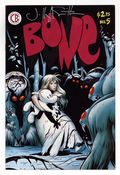 Cover art by Jeff Smith. Untitled story, script and art by Jeff Smith; Rat Creatures attack the farm but Thorn and Bone narrowly escape; Phoney Bone makes it to Barrelhaven and finds Smiley Bone. This is a first printing. Most issues from #1-12, and possible some beyond, have been reprinted. Reprints may be identified by a 2nd, 3rd, 4th, 5th, etc. printing notice inside the comic. 28 pgs. $2.95. This is a first printing. Most issues from #1-12, and possible some beyond, have been reprinted. Reprints may be identified by a 2nd, 3rd, 4th, 5th, etc. printing notice inside the comic. Cover price $2.95.