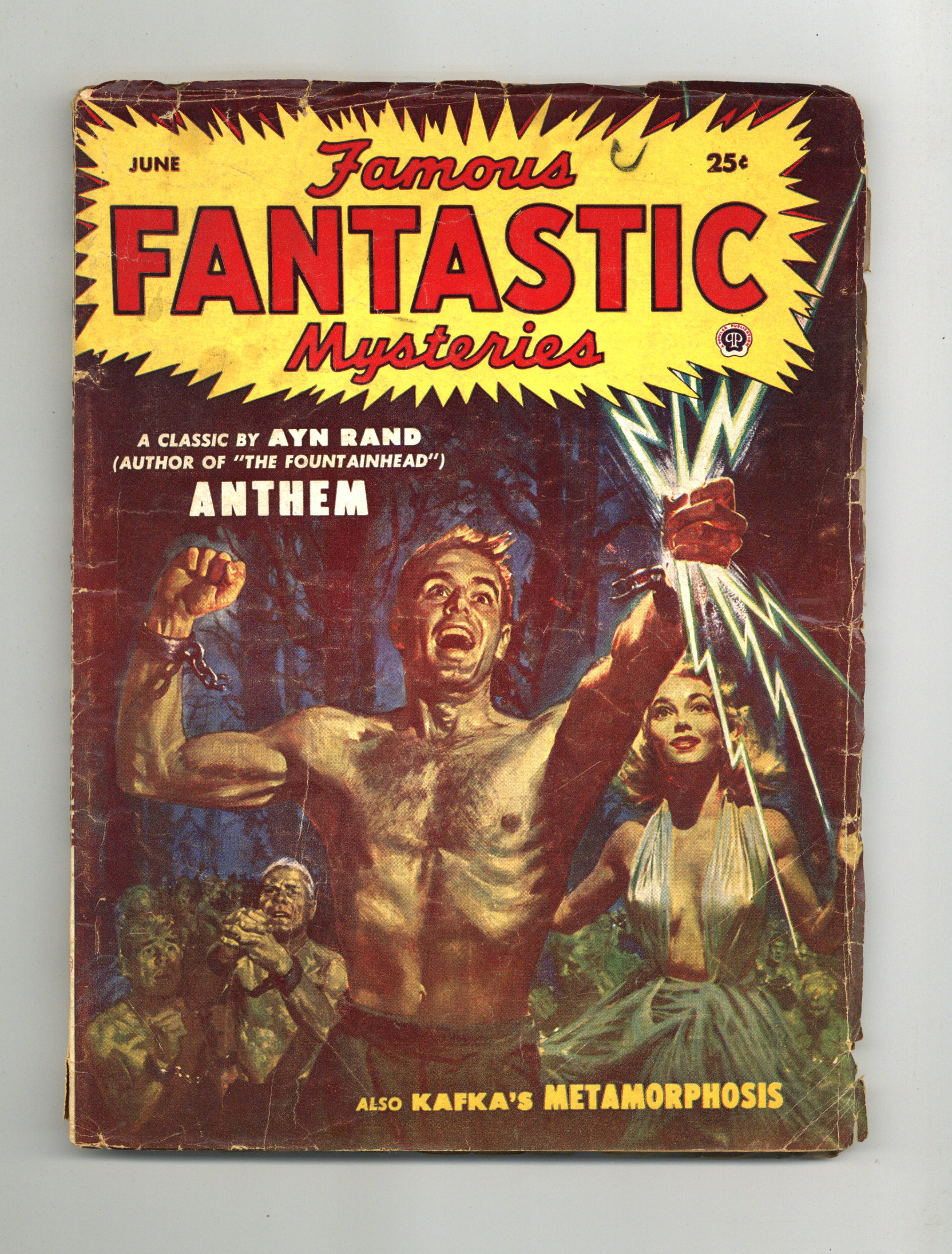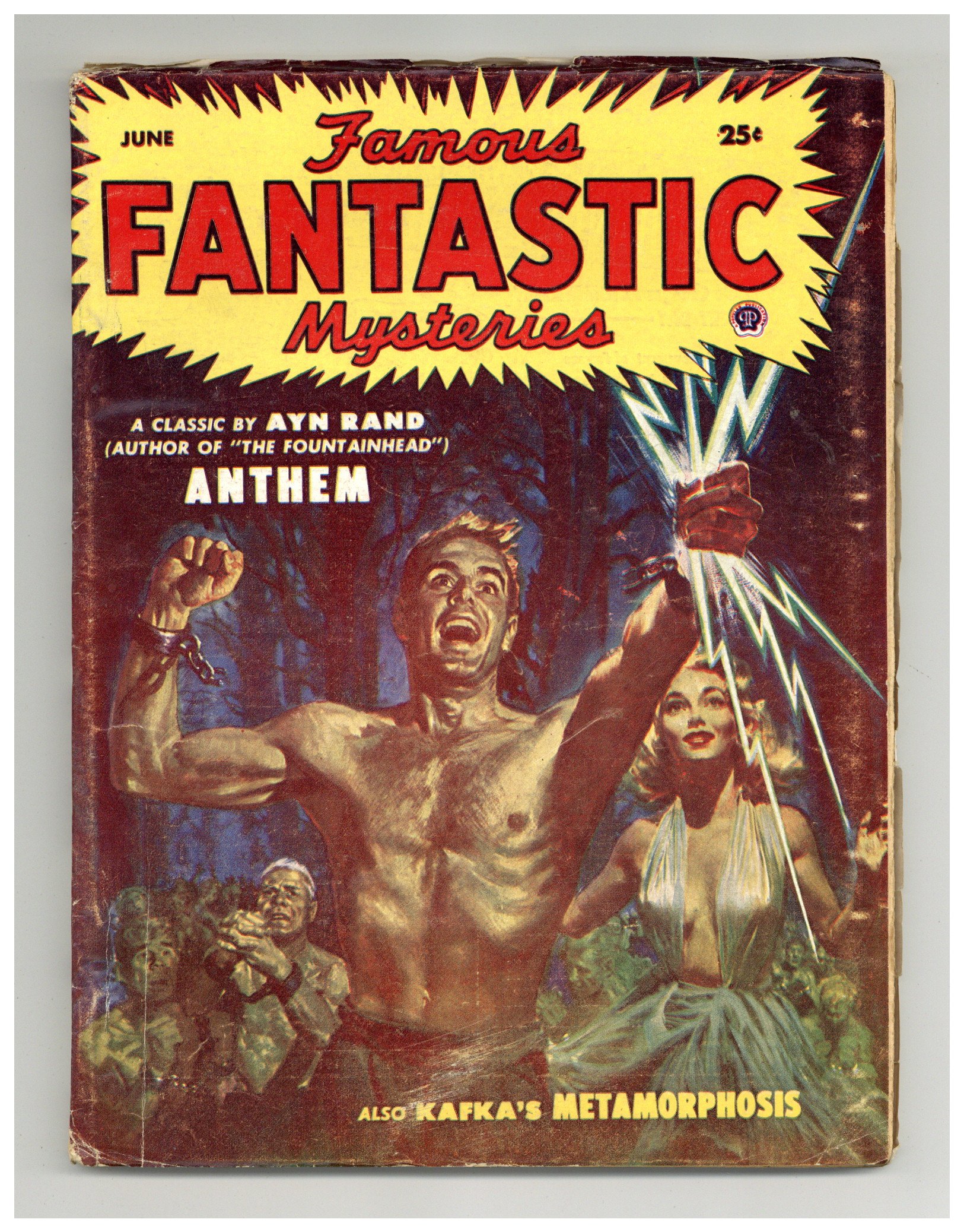 Vol. 14, No. 4 - June 1953. Author Ayn Rand's only appearance in pulps. June, 1953. Final Issue. Cover by Lawrence Stevens. "Anthem" by Ayn Rand (author's only appearance in pulps), "Worms of the Earth" by Robert E. Howard, "Pendulum" by Ray Bradbury & Henry Hasse, plus other science fiction and fantasy reprints by Franz Kafka, Benjamin Ferris, and Arthur Dekker Savage. Illustrations by Virgil Finlay, Lawrence Stevens, Hannes Bok. 6.75-in. x 9-in.; black and white; 116 newsprint pages. Published by Popular Publications Cover price $0.25.
