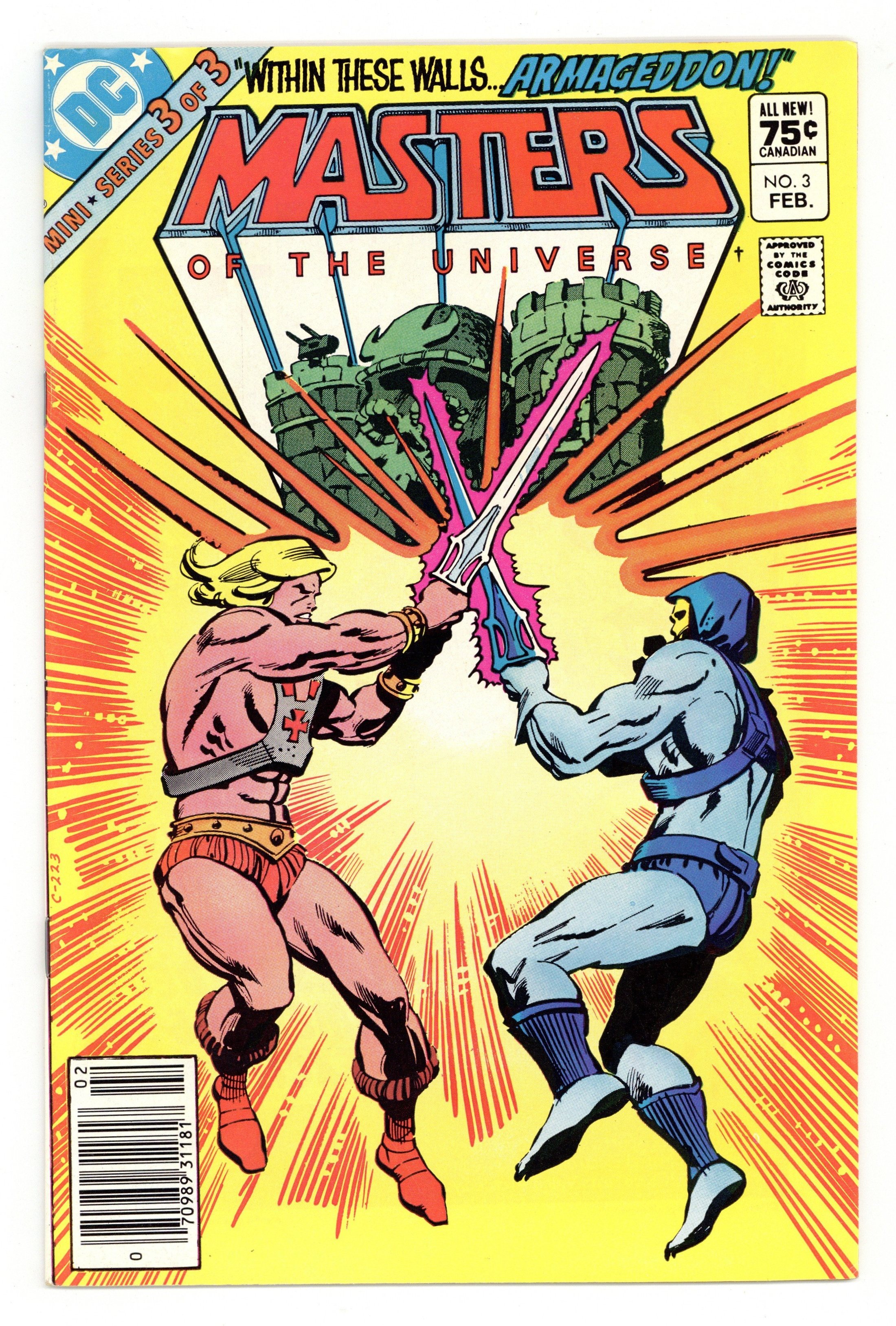 $38.00Canadian edition with $.75 cover price. 'Within These Walls…Armageddon!" Written by Paul Kupperberg. Art by George Tuska and Alfredo Alcala. The mysterious cosmic being known as Zodac, Rider of the Spaceways, brings forth a warning. And thus the stage is set for the ultimate battle between good and evil. Its He-Man and his brave allies vs. Skeletor and his vile henchmen for the fate of not only Eternia, but the very cosmos as well. Who will be the Masters of the Universe?! 32 pages, FC. Cover price $0.75.