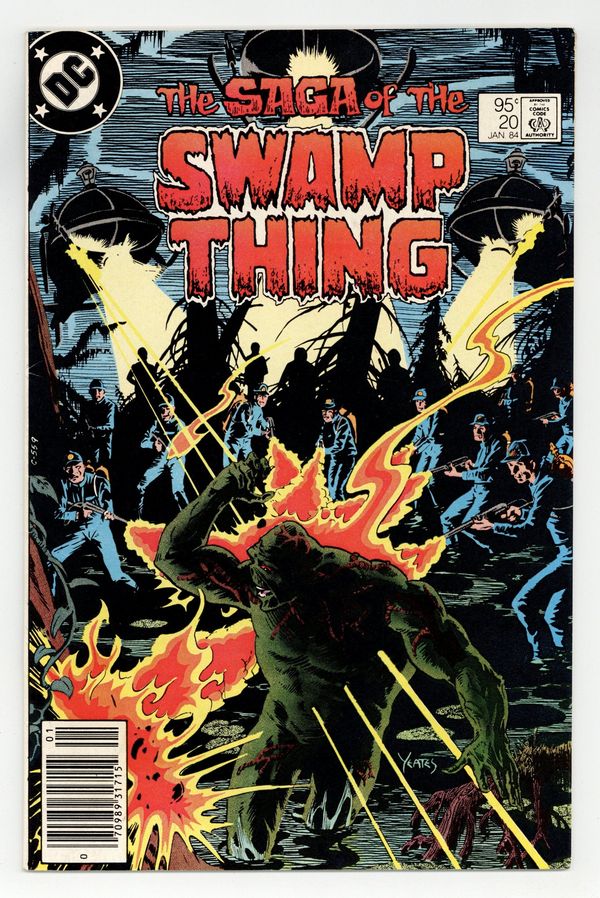$60.00Canadian Edition with 75 cent cover price.Canadian edition with $.95 cover price. General Sunderland's men follow Liz Tremayne and Dennis Barclay to find Swamp Thing; they are supposed to hunt and kill Swamp Thing; Sunderland's men kill The Swamp Thing, but fail to kill Liz and Dennis. 36 pgs., full color. Cover price $0.95.