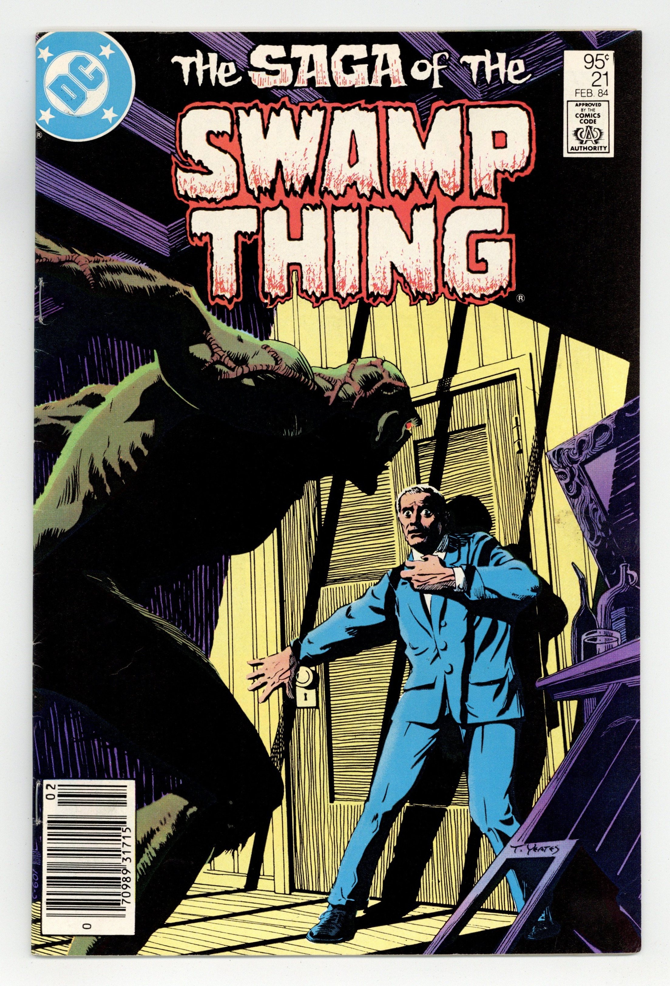 $54.00Canadian edition with $.95 cover price. Cover art by Tom Yeates. The Anatomy Lesson, script by Alan Moore, art by Stephen R. Bissette and John Totleben; General Sunderland hires Jason Woodrue to examine Swamp Thing and determine how Alec Holland became the monster, but Woodrue discovers that Swamp Thing only thinks that he was Alec Holland; When Sunderland fires Woodrue, the scientist allows Swamp Thing to take revenge on Sunderland for the both of them; new origin for Swamp Thing. 36 pgs., full color. Cover price $0.95.
