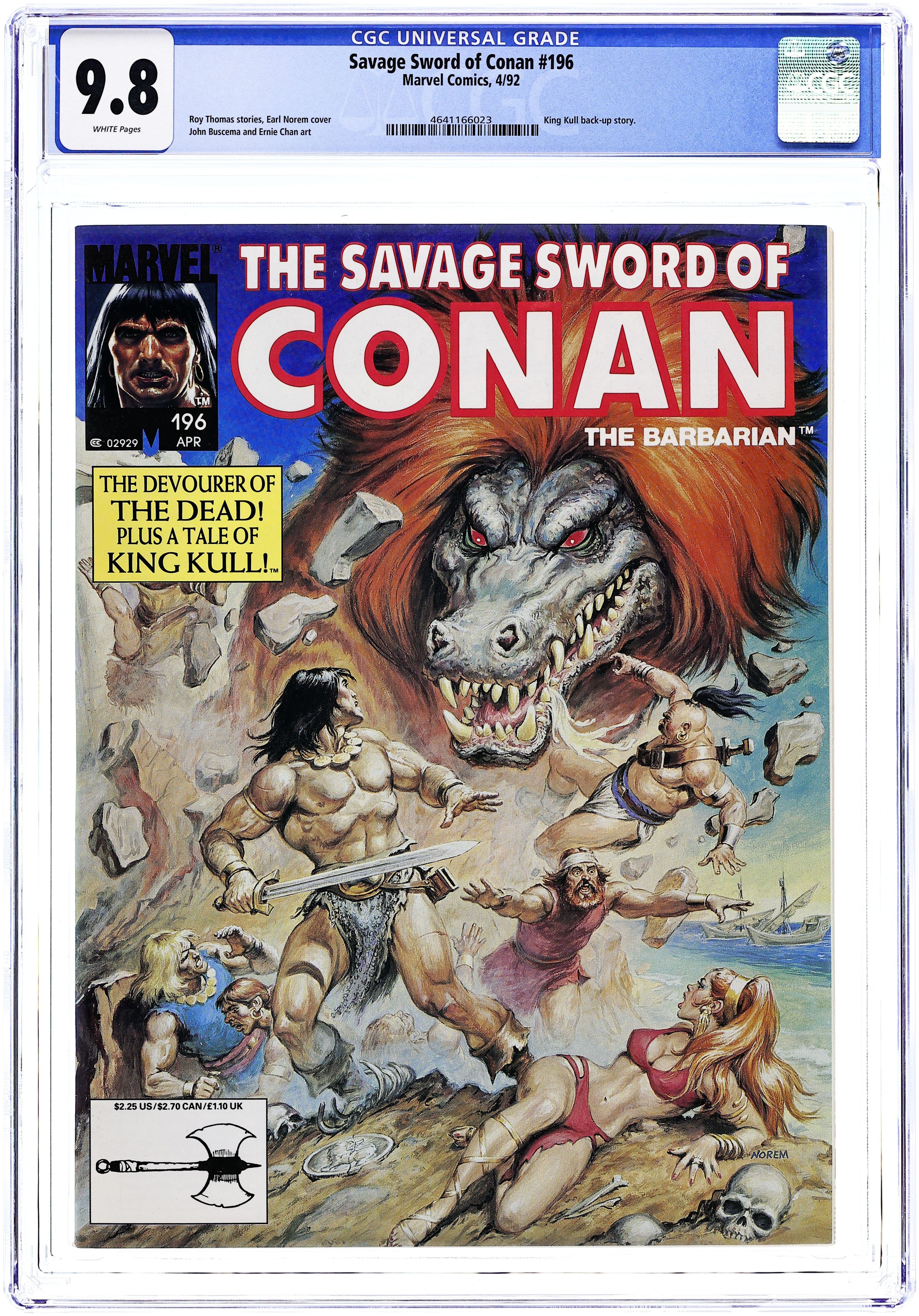 Conan stars in "Devourer of the Dead." Script by Roy Thomas, breakdowns by John Buscema, finished art Ernie Chan. Young Kull stars in "Bride of the Buccaneer." Script by Thomas, art by E.R. Cruz. Pin-ups by Dave Simons, Mike Docherty/Chan, and Dan Panosian. Earl Norem cover. Cover price $2.25.