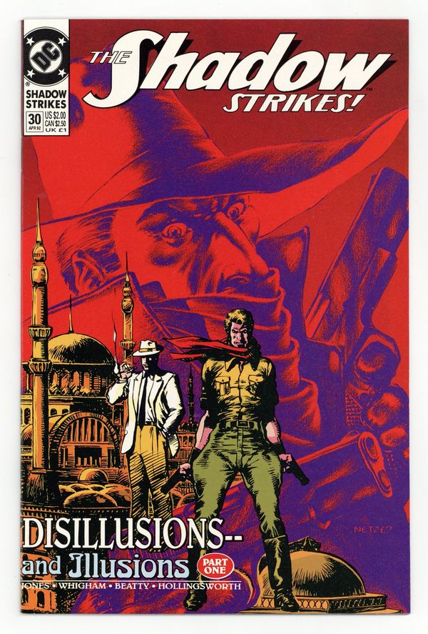 Tags: Pulp Adventure$23.50Disillusions and Illusions, Part 1 of 2. Joe Cardona has found a copy of Lamont Cranston's diary. Its pages reveal his 1929 meeting in Istanbul with the mystery man named Kent Allard and how their relationship led to the birth of the Shadow. Written by Gerard Jones, with art by Rod Whigham and John Beatty. Cover by Michael Netzer. Deluxe Format. Cover price $2.00.