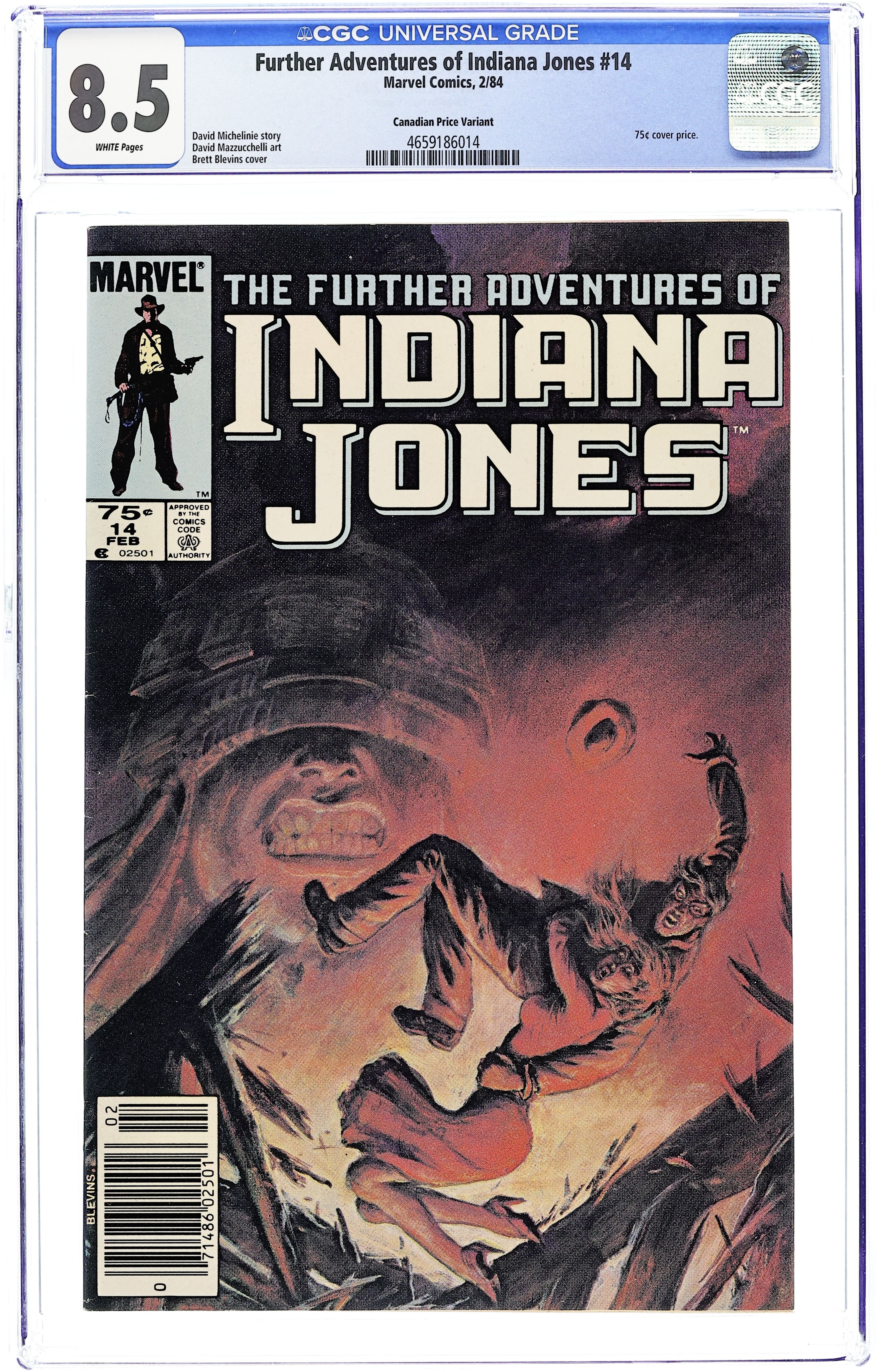 Canadian edition with $.75 cover price. See Indy and Marion save their museum from...its kindly curator? There's more here than meets the eye! A trunkful of old bones couldn't pose a threat...or could it? Also see Marion in her new job as museum publicist--if she survives! "Demons" is written by David Michelinie, with pencils by David Mazzucchelli. Painted cover by Bret Blevins. Cover price $0.75.