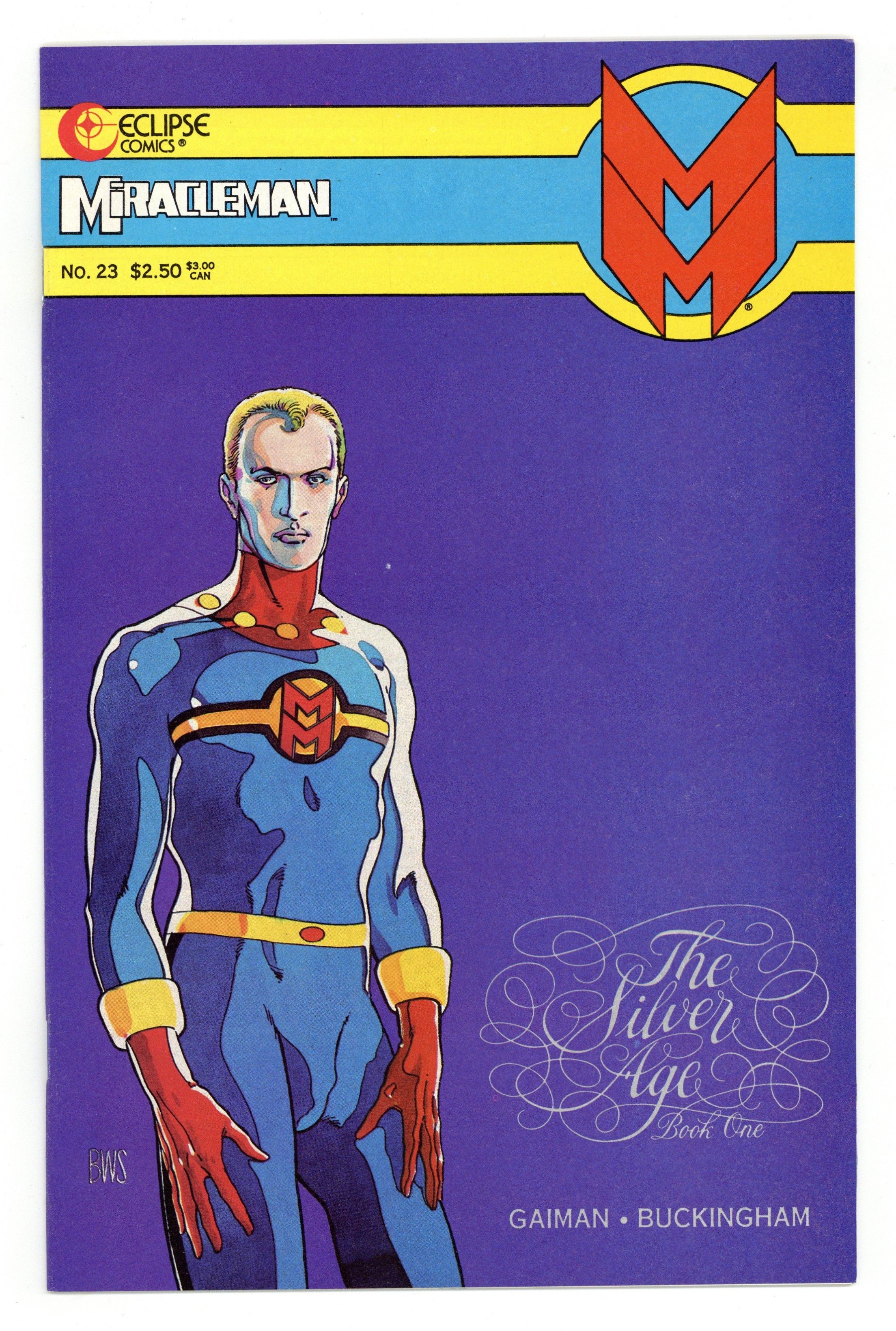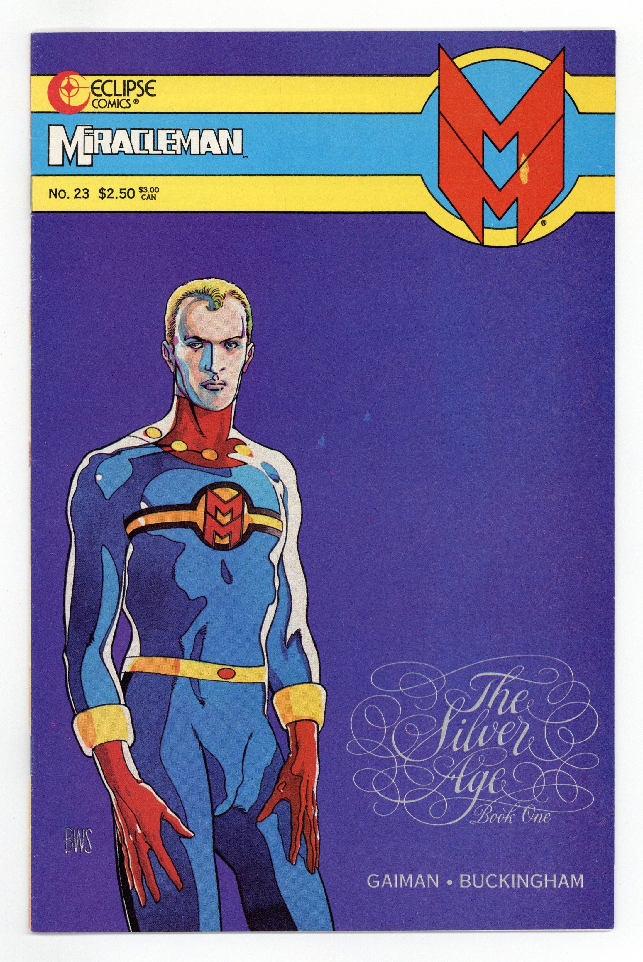 $31.50The Secret Origin of Young Miracleman - Written by Neil Gaiman. Art by Mark Buckingham. Cover by Barry Windsor-Smith. The Silver Age begins with Book One! Characters in this issue: The Zapster (introduction), Jenda (introduction), Duncan (introduction), Mist, Panorama (introduction), Kay (introduction), Young Miracleman, Mors, Winter Moran, Miraclewoman, British Bulldog (Big Ben), Firedrake (Huey Moon) and Warpsmiths (Kana Blur, Phon Mooda). Plus: 4 pages of Mark Buckingham's sketches of the Miracleman Family. 32 pages, full color. Cover price $2.50.