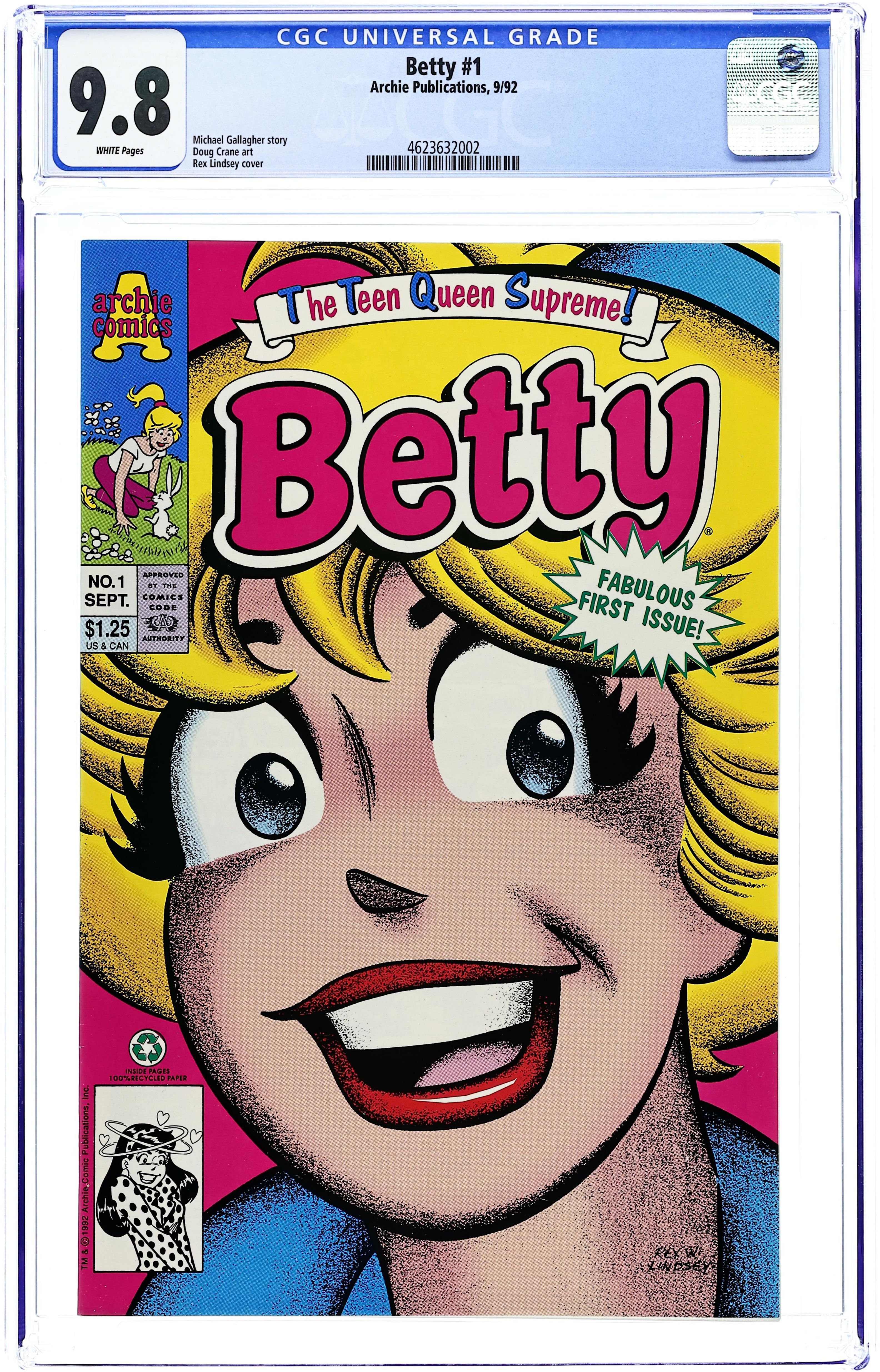 Written by Michael Gallagher and George Gladir. Art by Doug Crane, Henry Scarpelli, and Mike Esposito. Cover by Rex W. Lindsey. Betty tells the readers about famous women in history with the name "Betty" or "Elizabeth." Riverdale gets a new student who goes by the name "PC". Later in biology class, PC protests the frog dissection Mr. Flutesnoot plans by setting all the frogs free. Betty tries to rescue Veronica from the clutches of a Cable Shopping Network. Archie's Recycling Facts public service announcement. 36 pages, full color. $1.25. Cover price $1.25.