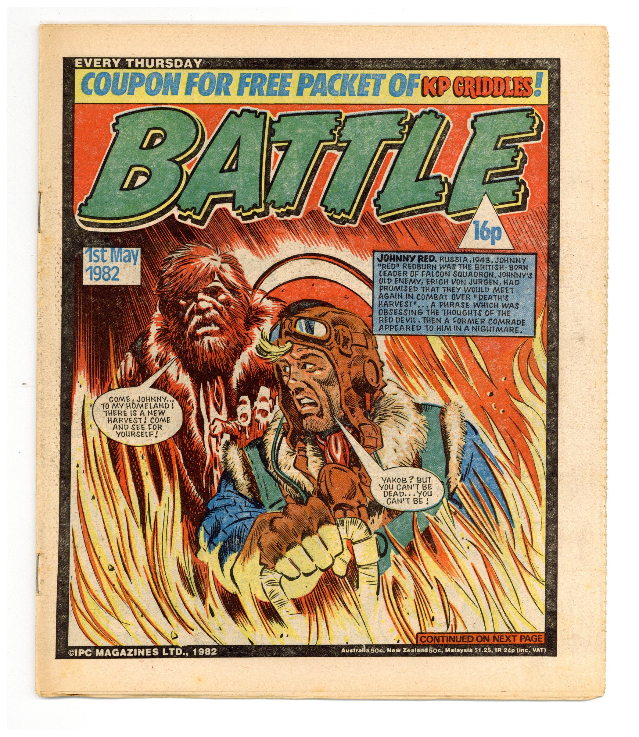 May 1, 1982. Published by IPC Magazines, Ltd. in the U.K. "Tough action war stories every week!" Combined with Valiant (also an IPC publication). 9 x 11 in.; black and white (color centerspread); 32 pages; 16p cover price.